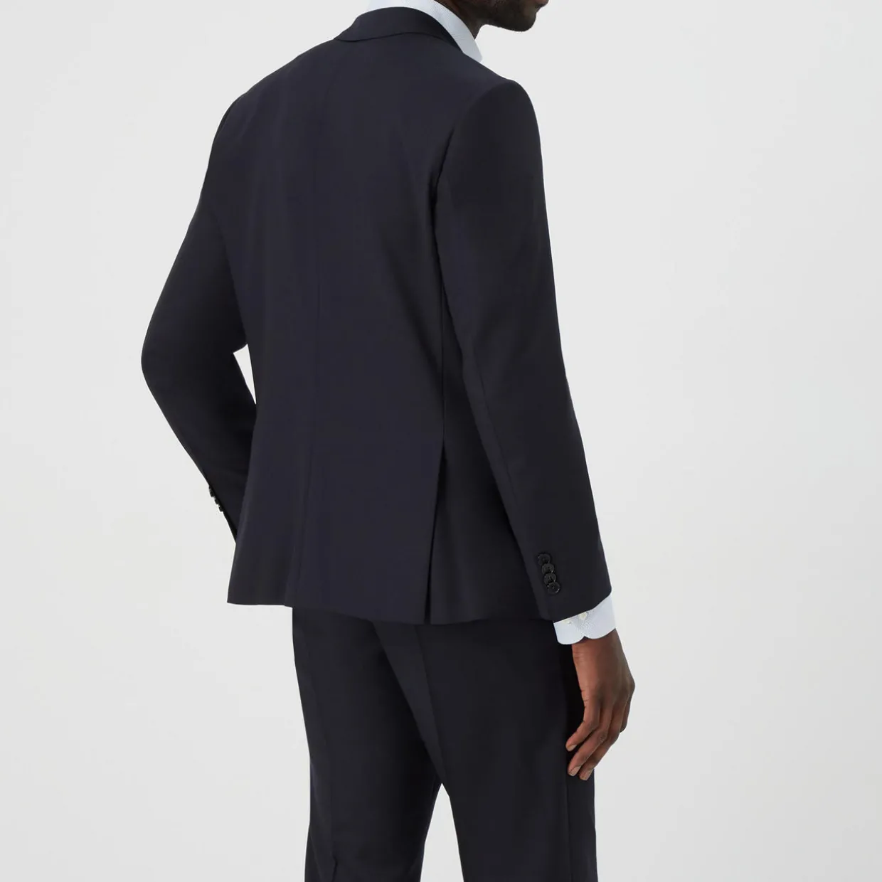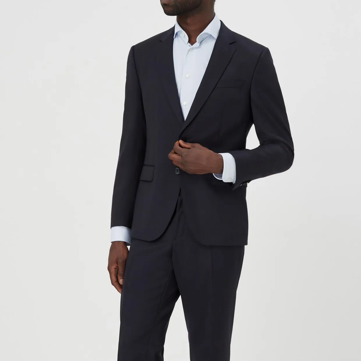 - Notch lapels, single breasted closure, logo lining, welted chest pocket, two flap pockets, slim fit, serge technique.