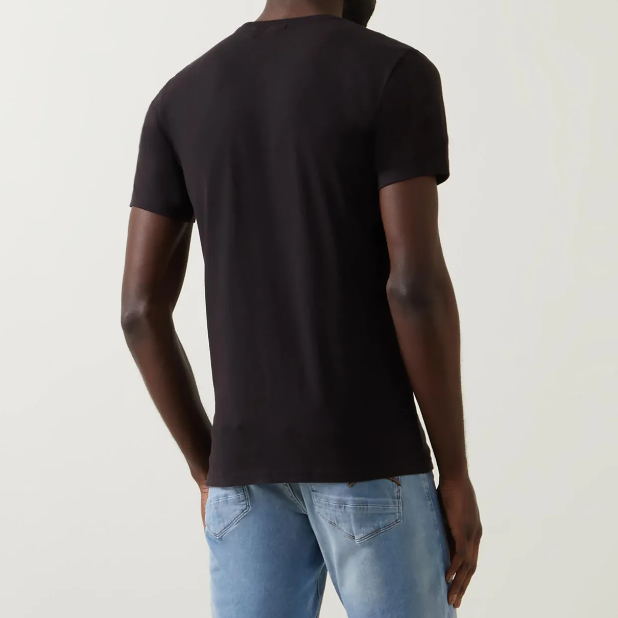 - Crew neckline, short sleeves, contrast logo branding, tonal stitching, straight hemline, smooth fabric