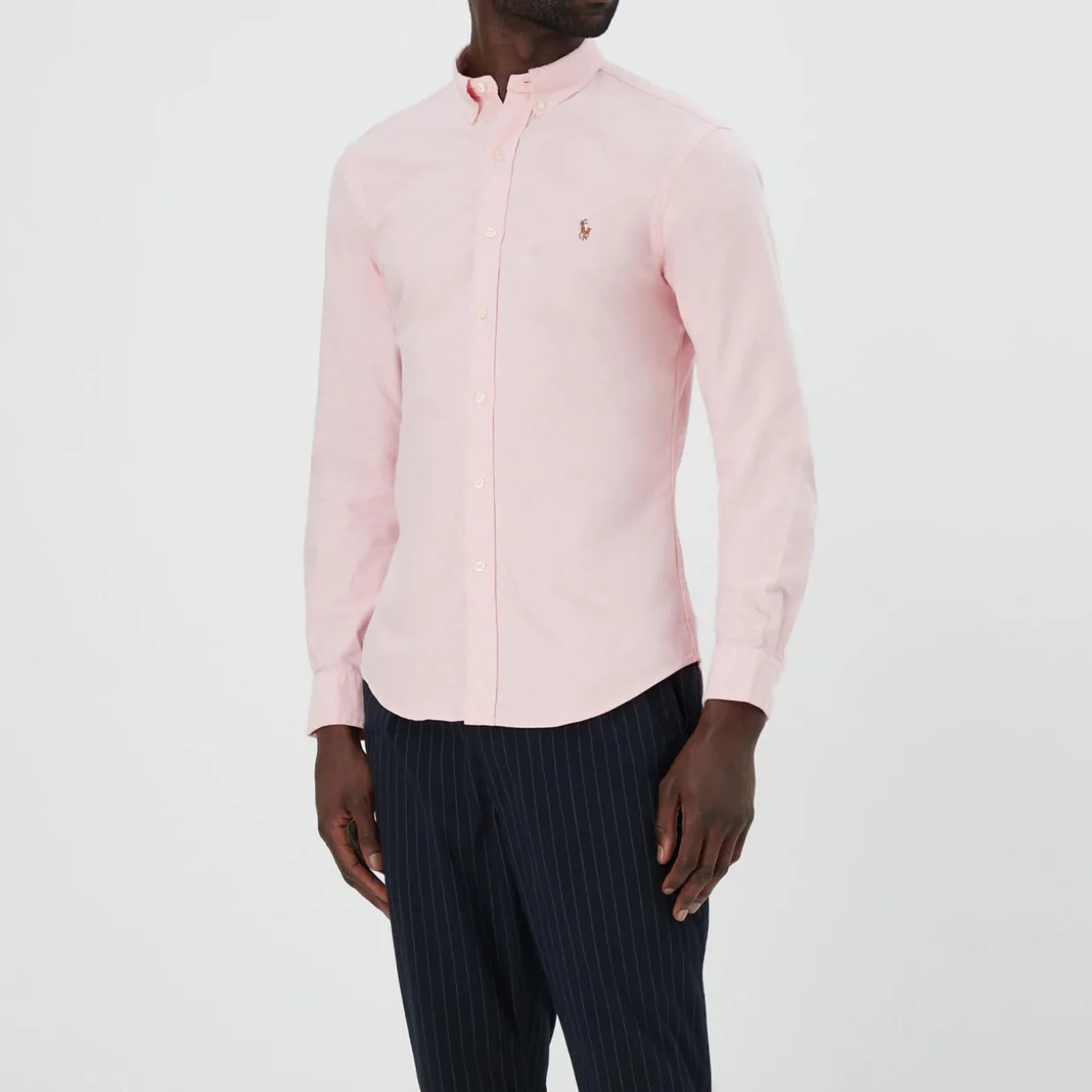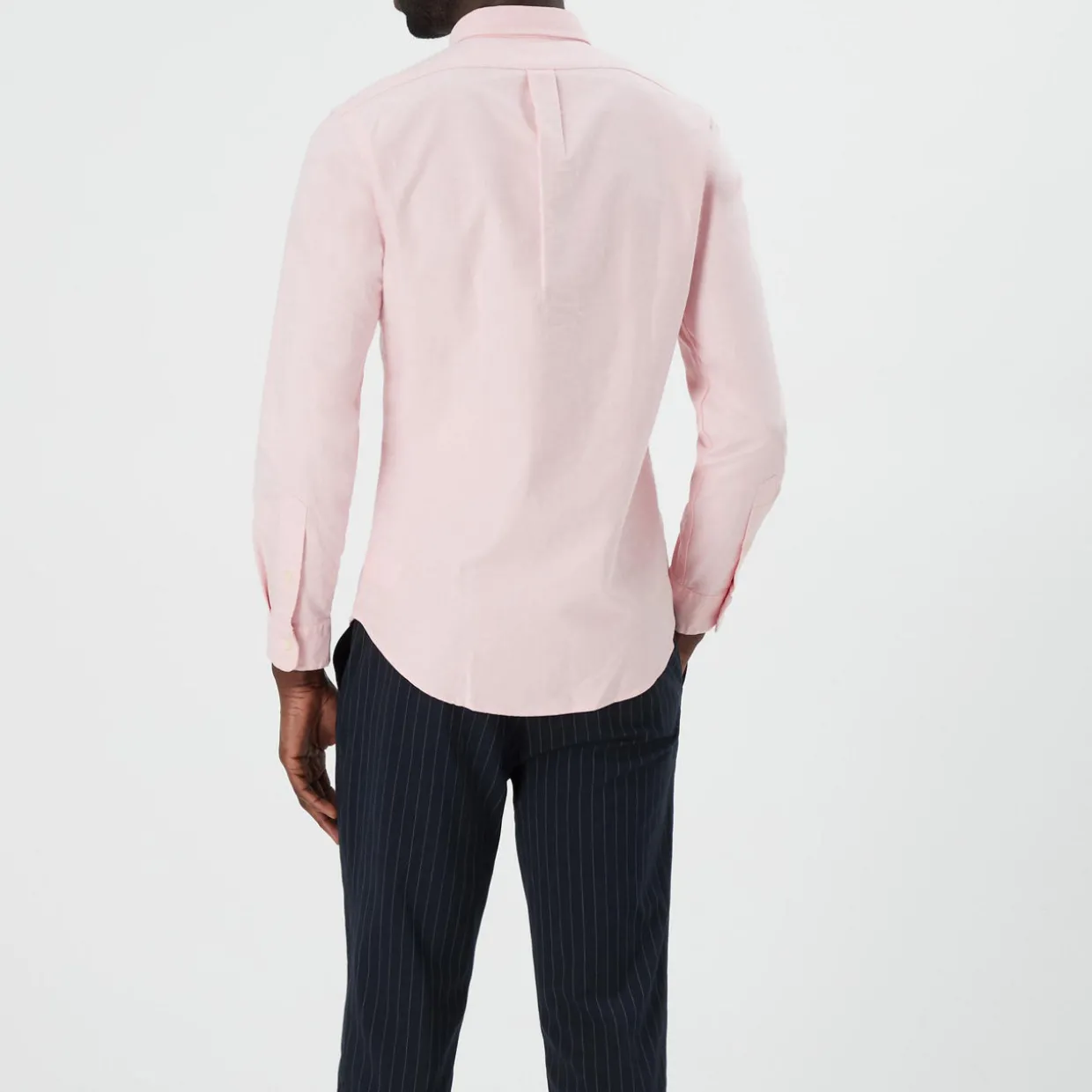 - Long-sleeved sport shirt, button-down point collar, applied buttoned placket. Barrel cuffs.