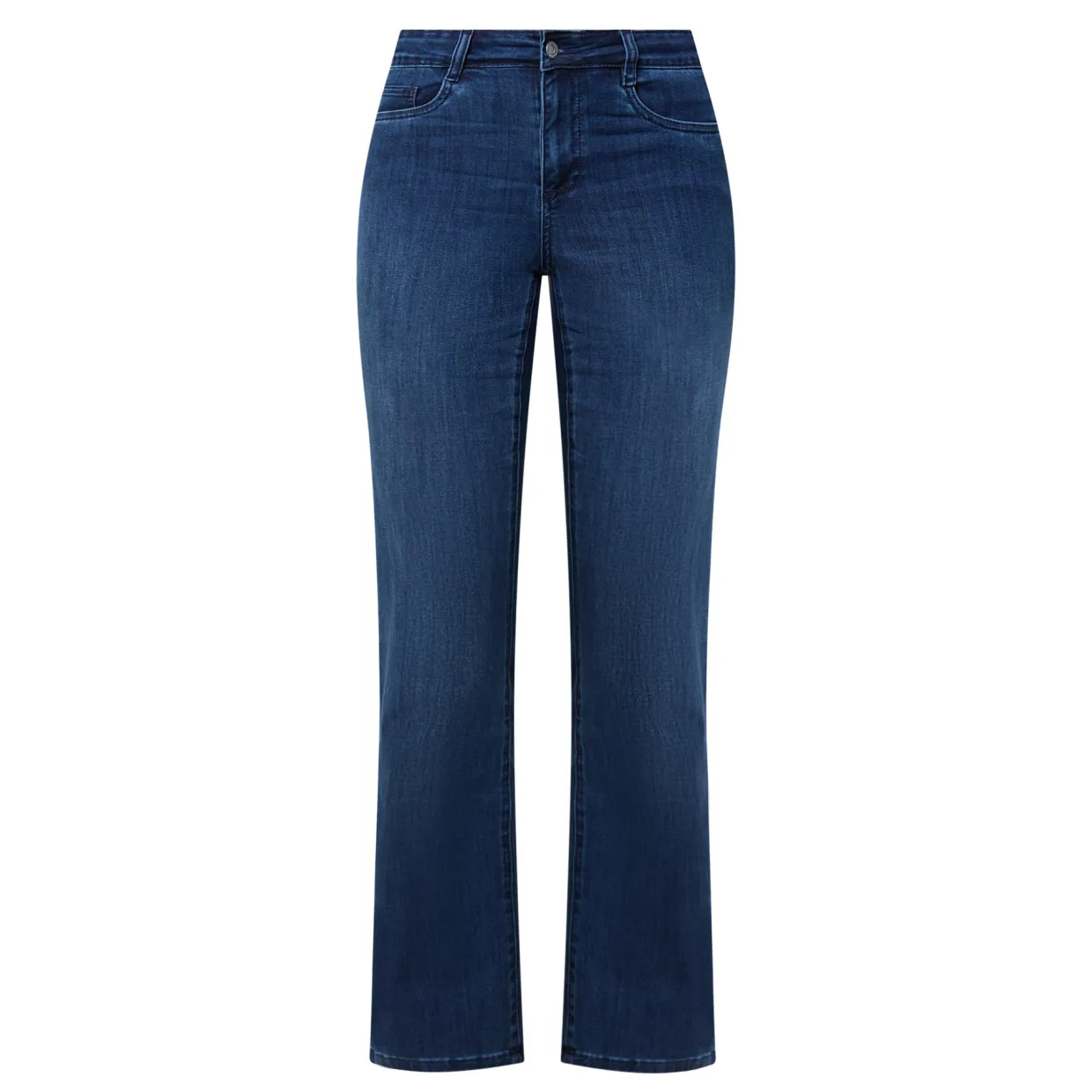 - Mid-rise, slim leg, belt loops, concealed fly and button fastening, five-pocket styling, rear logo detail, clean hems, mid wash finish