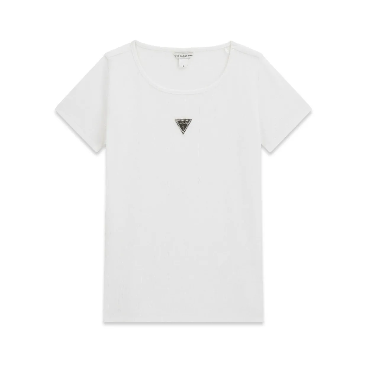 - Round neckline, short sleeves, straight hemline, triangular logo detail