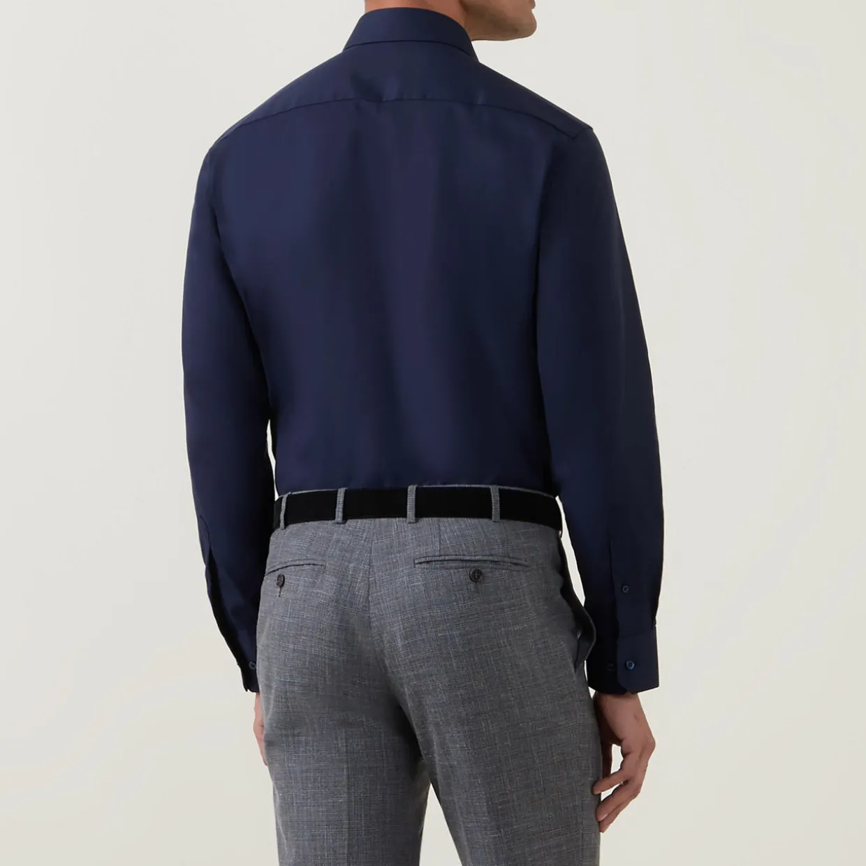 - Single cuff, long sleeves, pointed collar, button fastenings, regular fit, structured cuffs