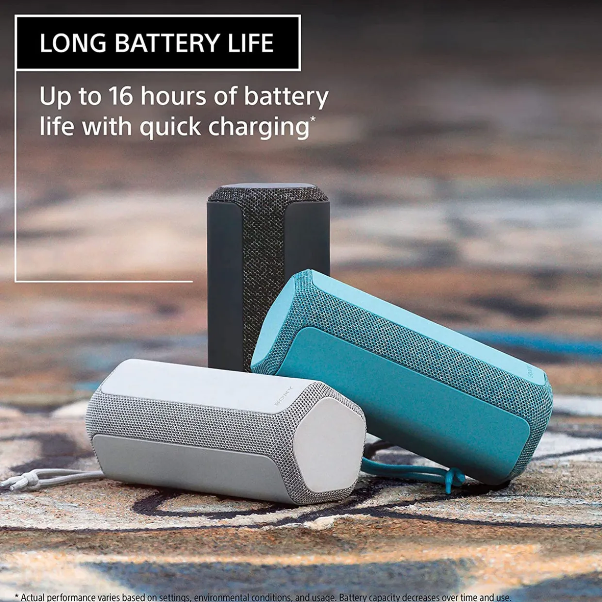 With the Sony XE200 wireless speaker, the atmosphere is better, wherever you go. Thanks to the Line-Shape Diffuser, the sound fills the space better, without degrading the sound quality. And its X-Balanced Speaker Unit helps you achieve higher sound pressure and stronger bass. Don’t worry, it’s also equipped with IP67 water and dust protection, so you can safely take it with you anywhere.