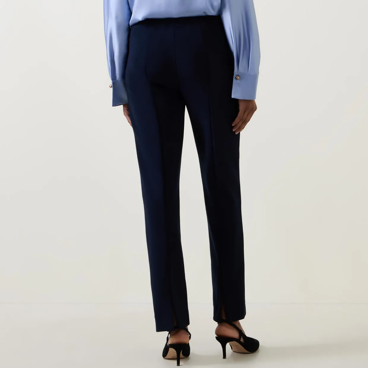 - High-rise, straight-leg, full-length, wide elasticated waistband, clean hems, pull-on style, smooth finish