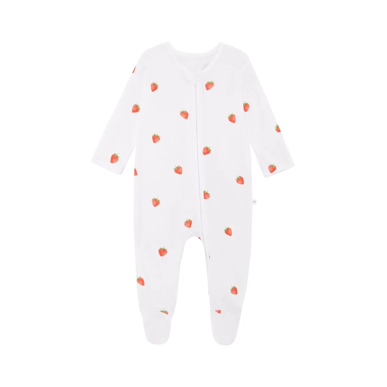 - Bamboo-cotton fabric, soft feel, breathable, thermoregulation, concealed two-way zipper fastening, hand-painted watercolour print, strawberry design, zip guard to protect sensitive skin, round neckline, long sleeves