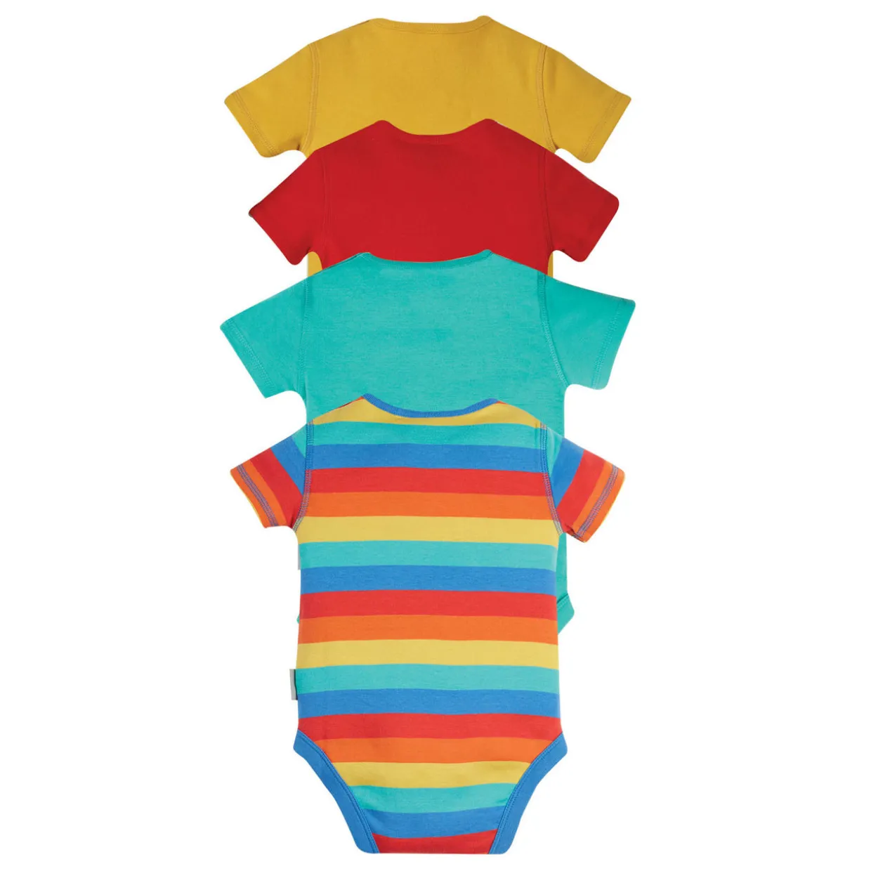 - Four-piece set, short sleeves, side neck popper fastening, round neckline