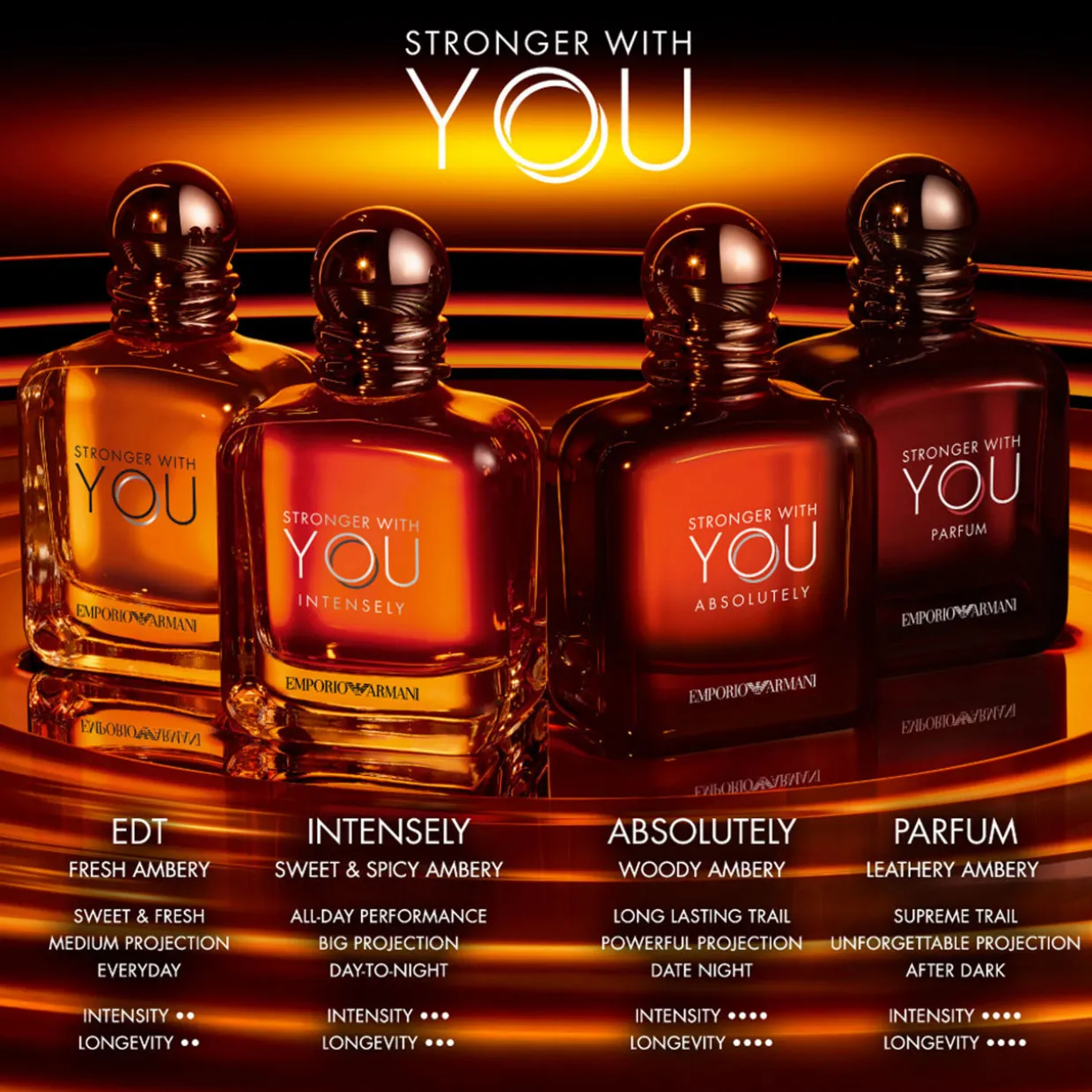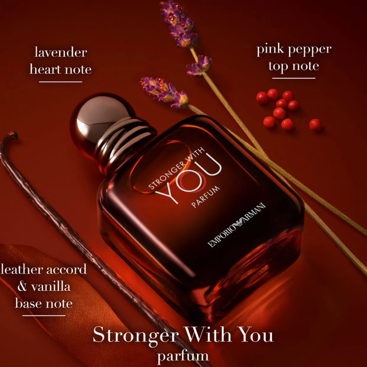 Description: Introducing the new Stronger With You Parfum, a captivating and head-turning new fragrance. The most intense and concentrated Stronger With You yet. A distinctive ambery, leathery, fougere fragrance.