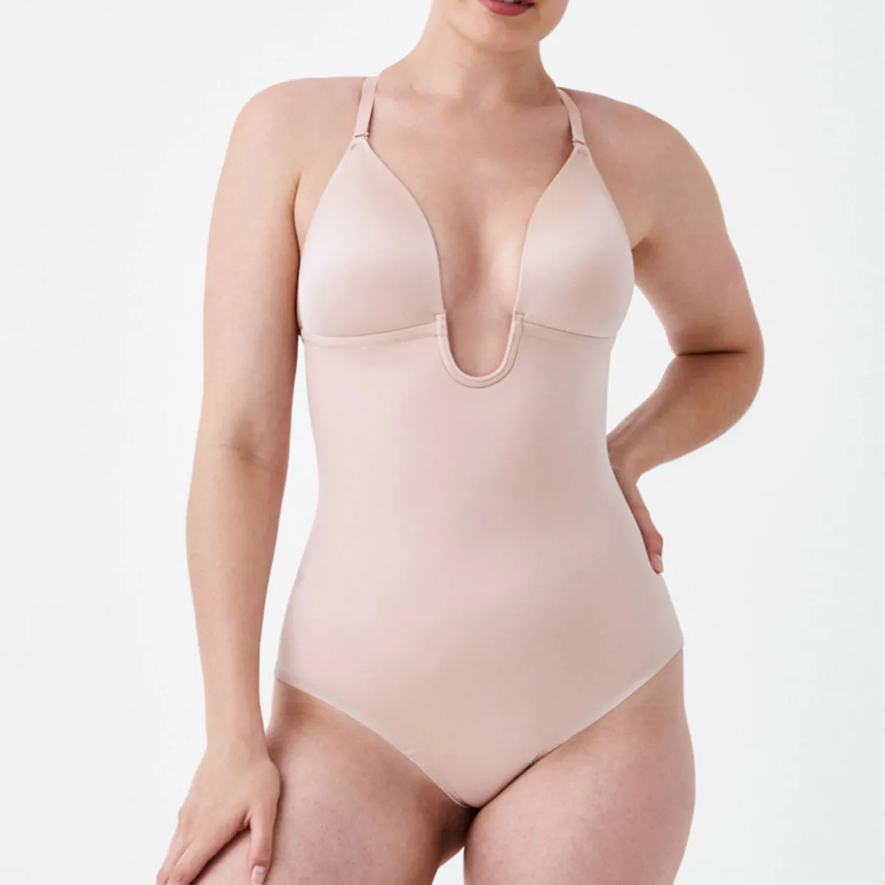 - Adjustable and 5-way convertible straps, Easy Access base, plunging neckline, breathable and lightweight fabric, clean-cut thong construction for smooth fabric to skin transition and stays invisible under clothes, low back with hook and eye fastening clasp, sleek and shaping fabric, underwired cups, additional clear straps and strap converter