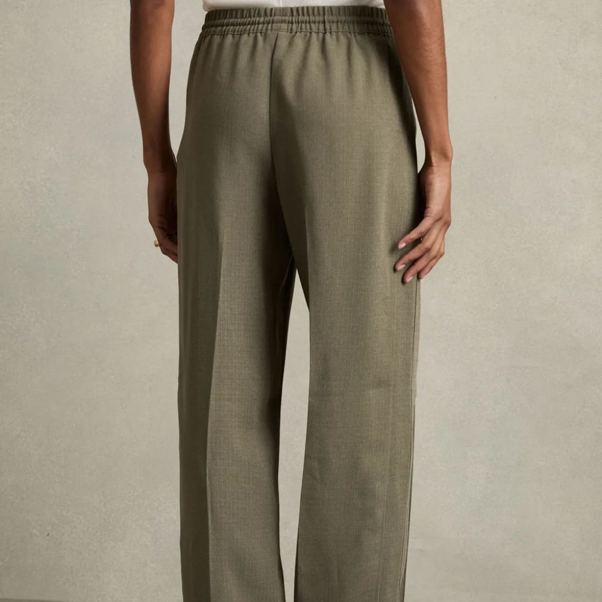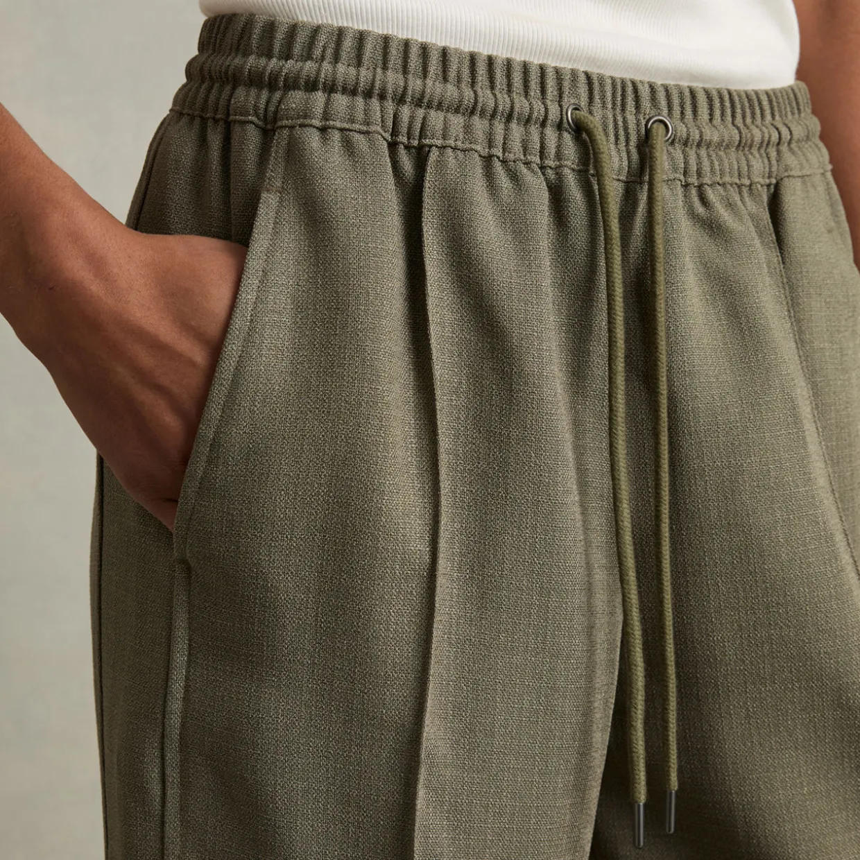 - Elasticated waistband with drawstring adjustable fit, side entry pockets, pintuck detail