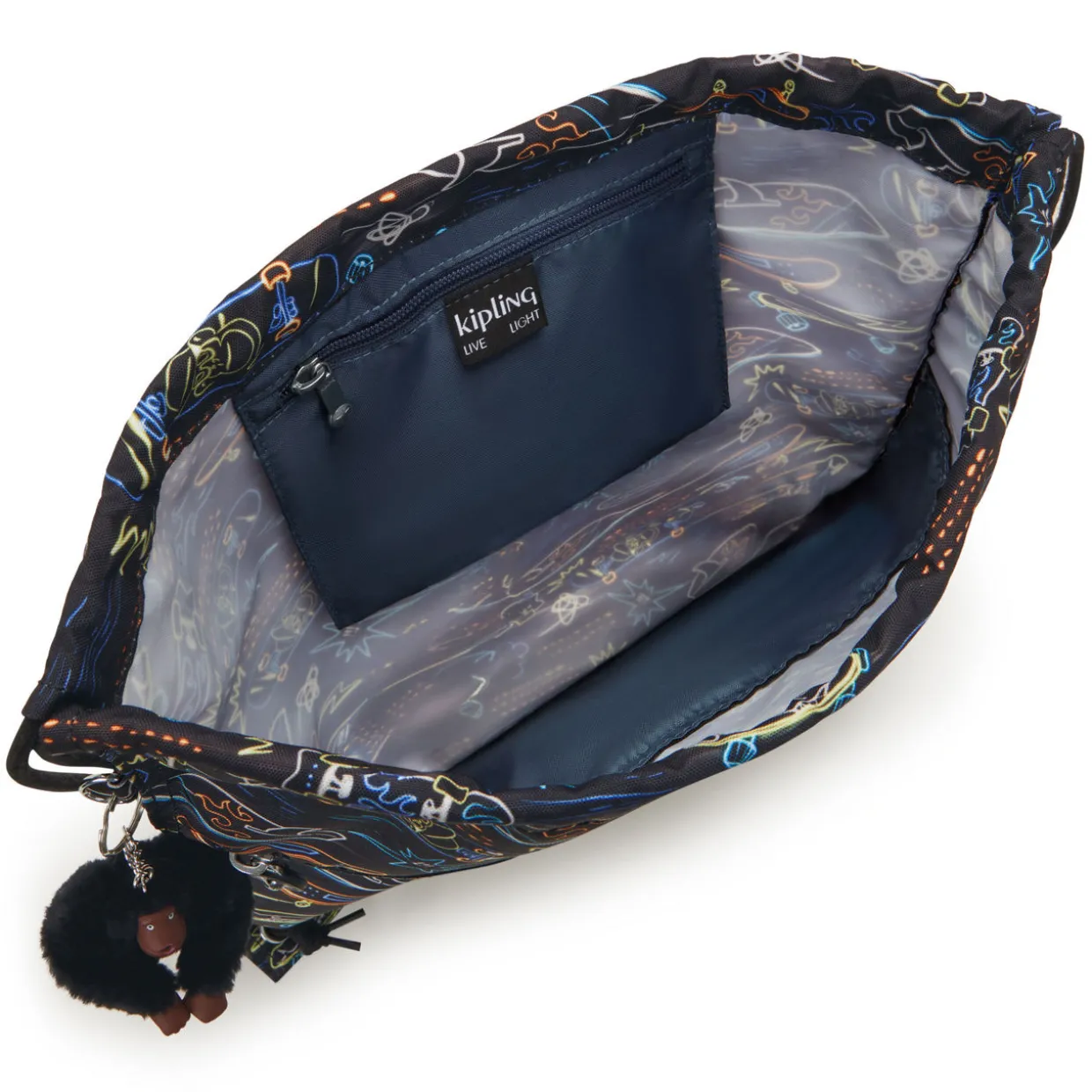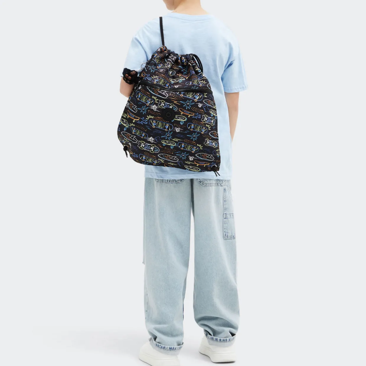 - Water-repellent material, drawstring fastening, zipped front pocket, drawstring straps, ideal for use as a gym or swim bag