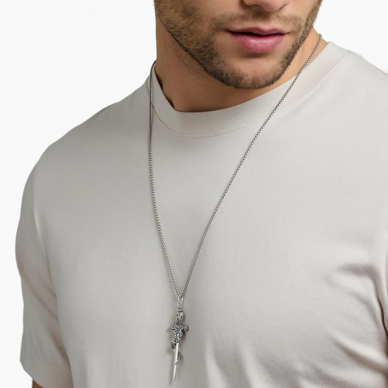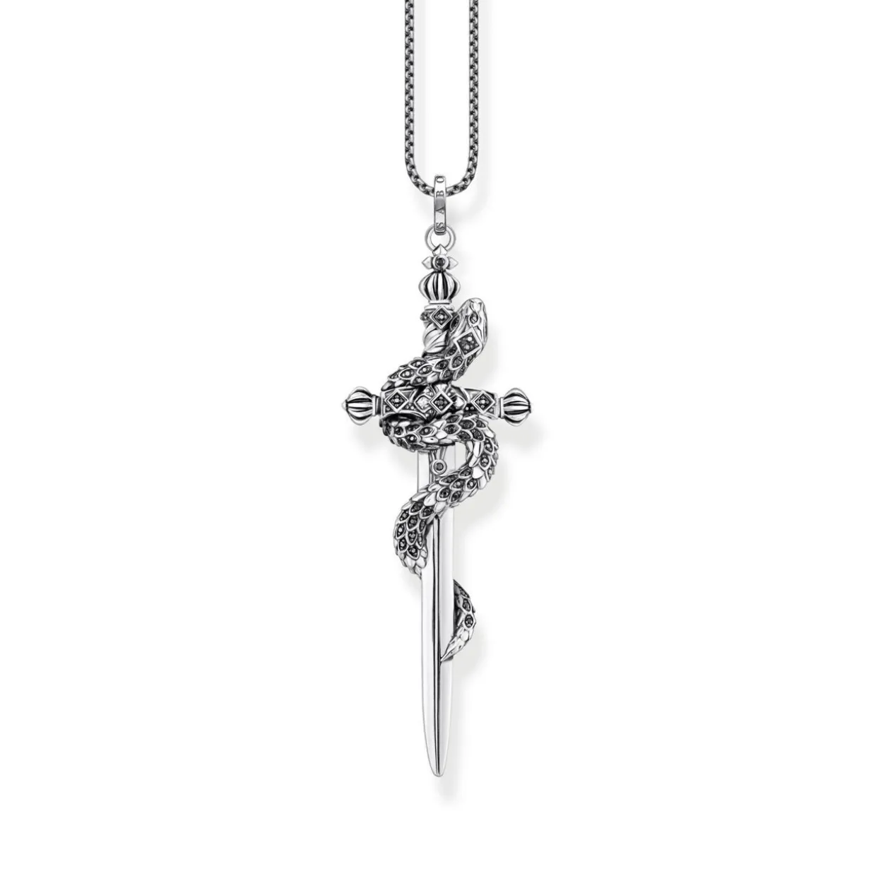 - Snake and sword design, scales designed in a 3D look with blackened 925 sterling silver, black zirconia stones accentuate the eyes and scales, raised detailing on the sword