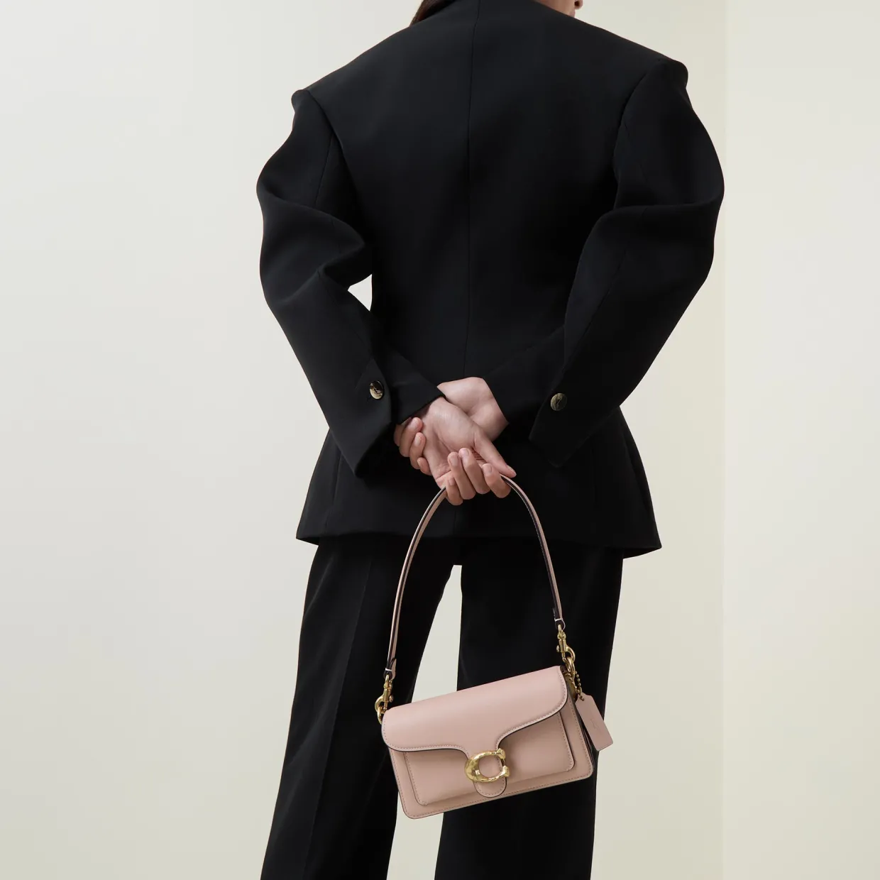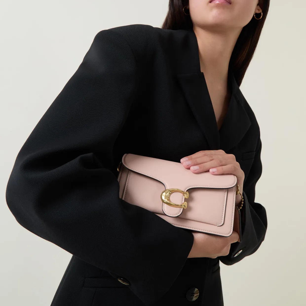 - Detachable top handle, shoulder strap, flap closure, logo hardware, hanging charm, zip compartment, slip pockets, open compartment