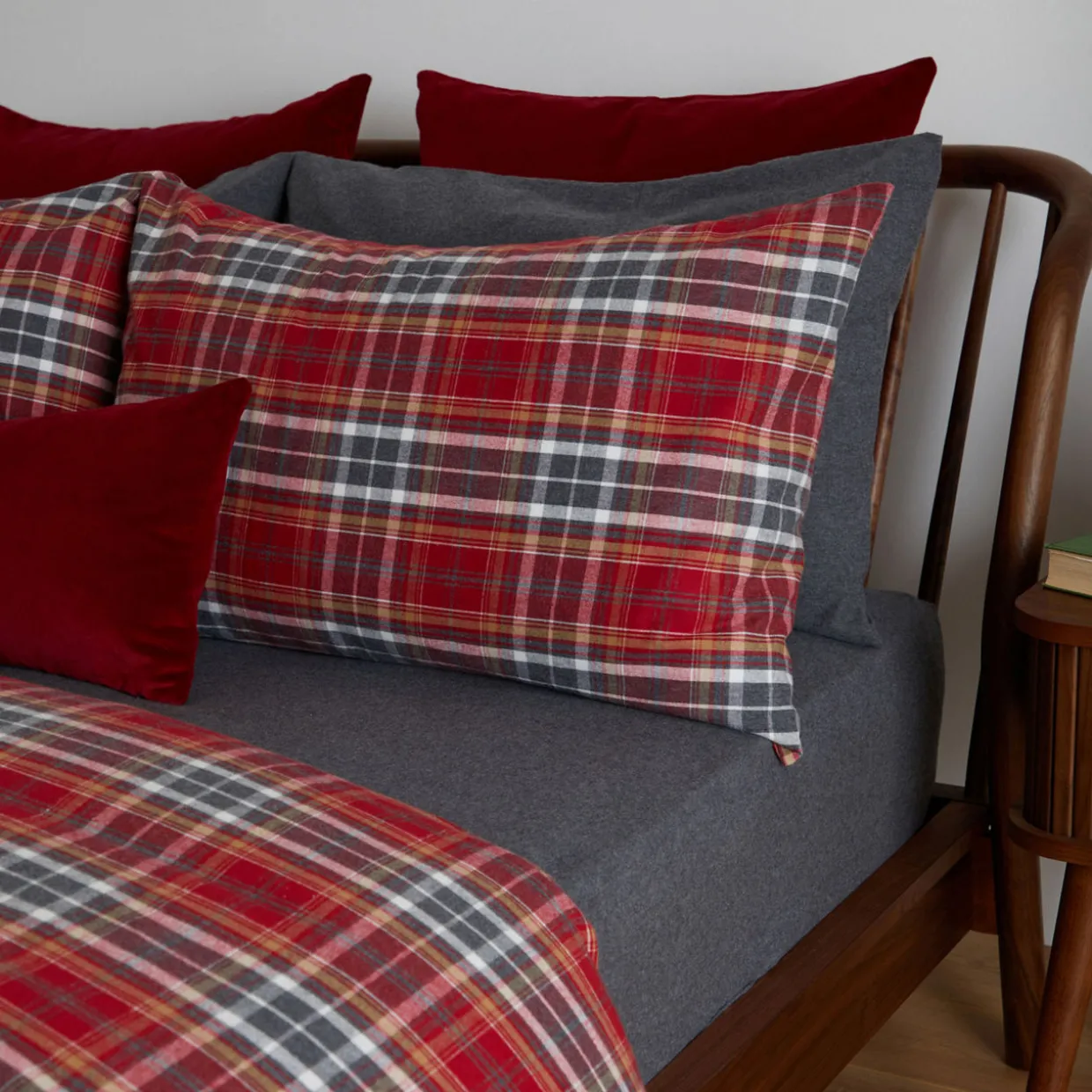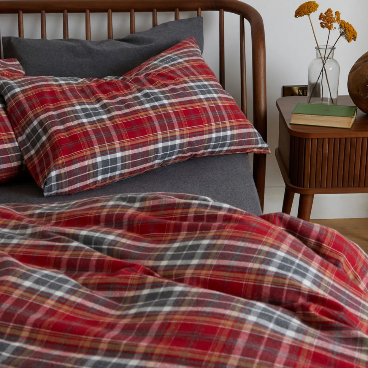 - Set of two, 300 thread count, durable, breathable, Oeko-Tex certified fabric, tartan pattern, super-soft flannel finish
