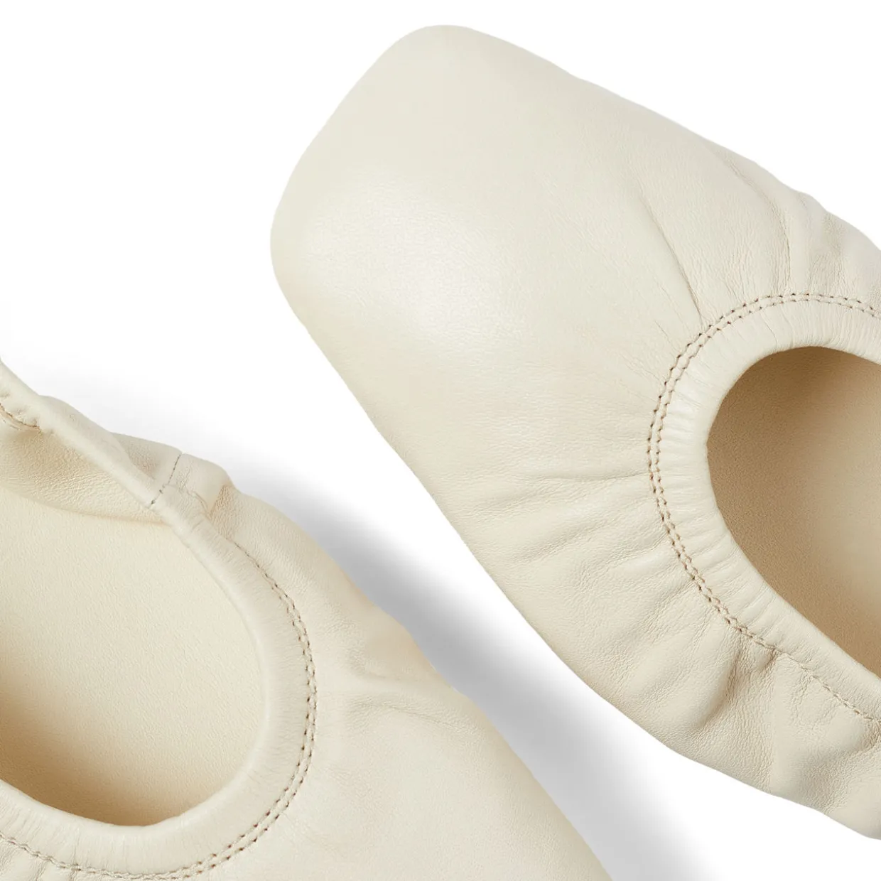 - Squared toe, slip-on style, elasticated trims, traditional Sacchetto construction, foldable