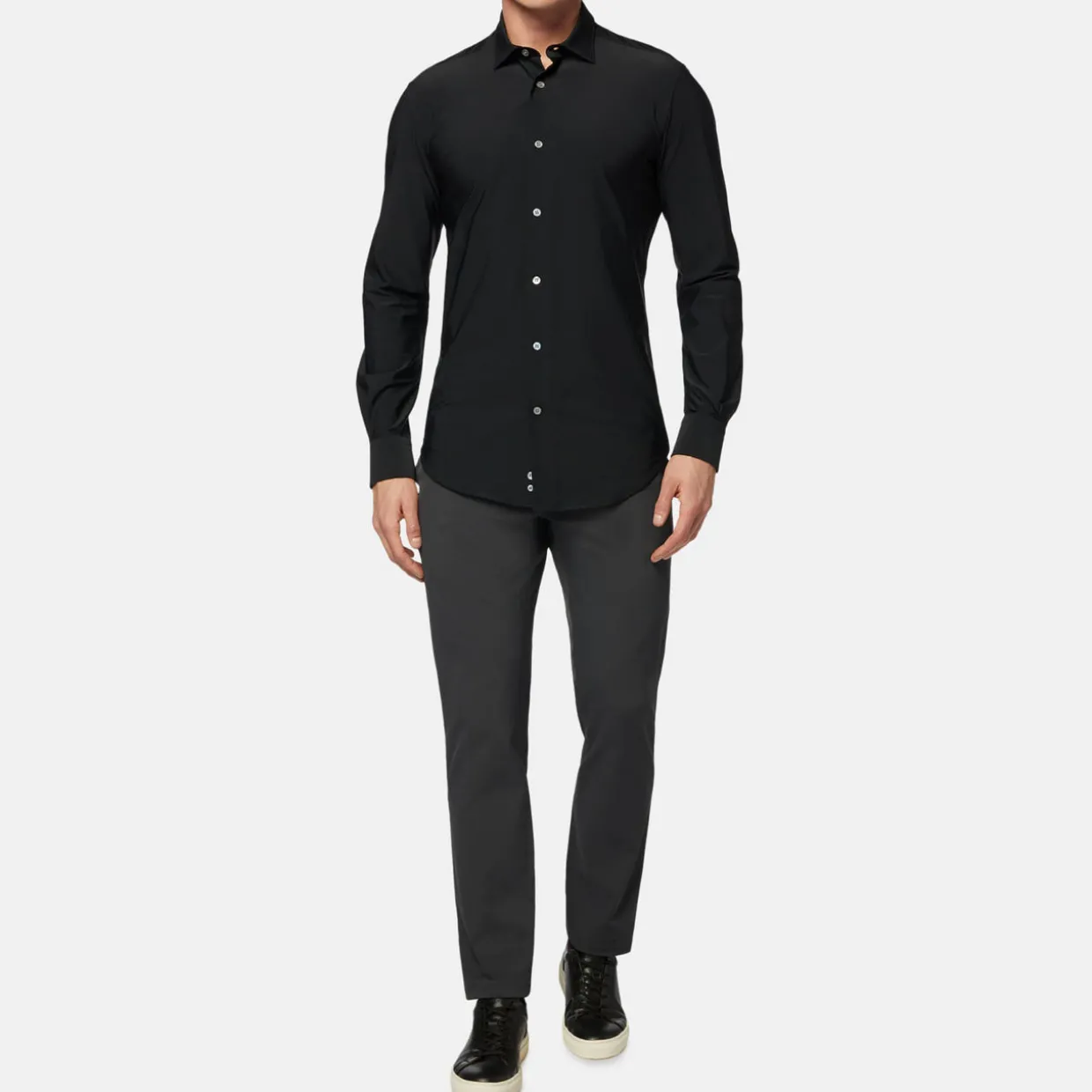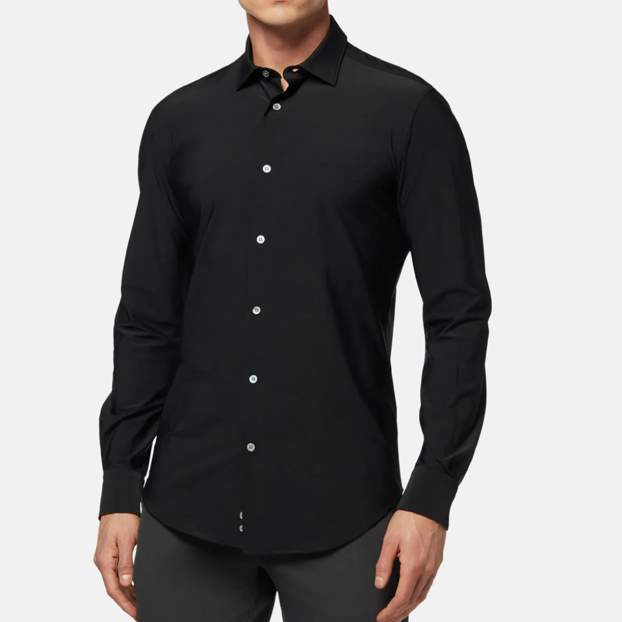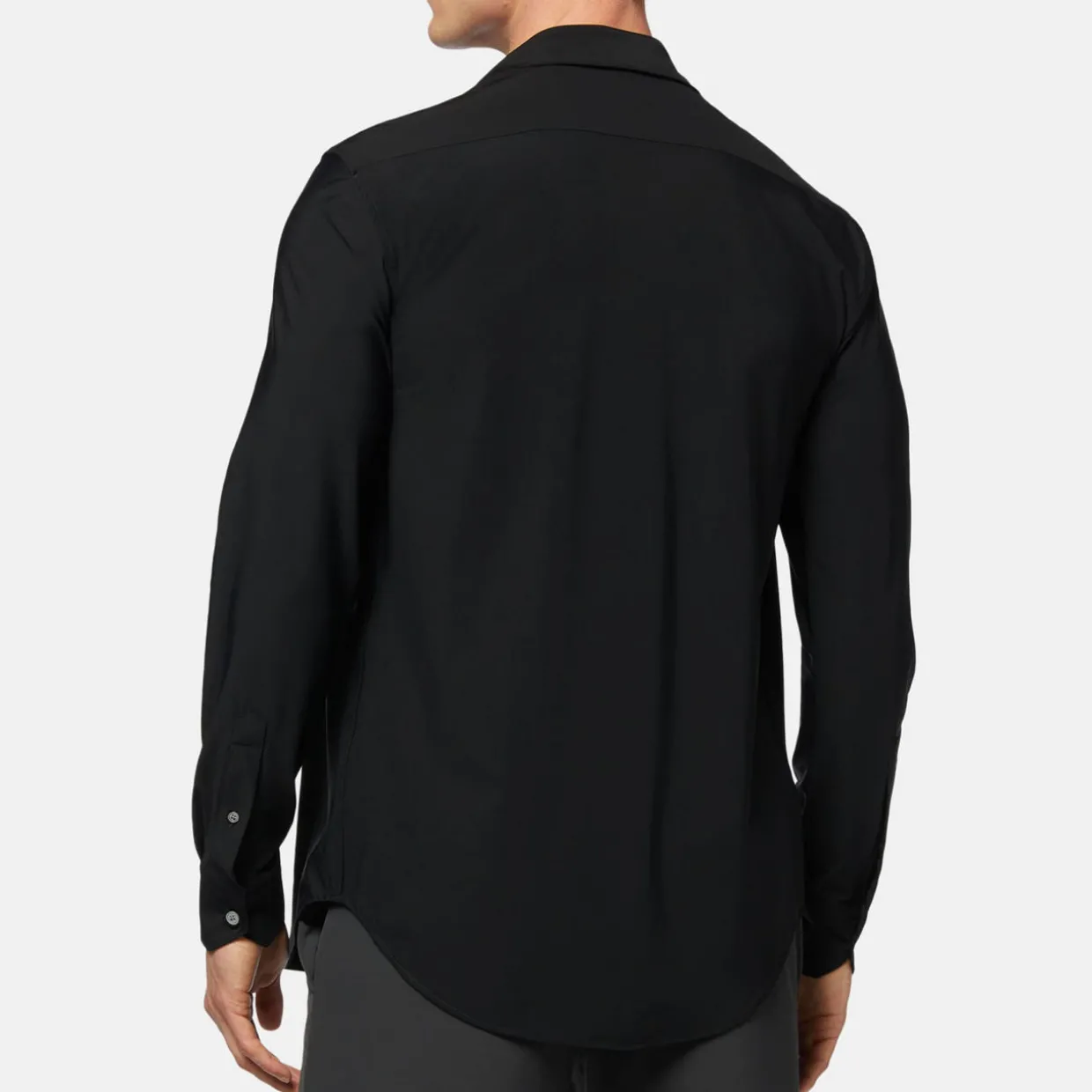 - High breathability, thermoregulation, easy maintenance, quick drying, slim fit, long sleeves, button fastenings, curved hemline