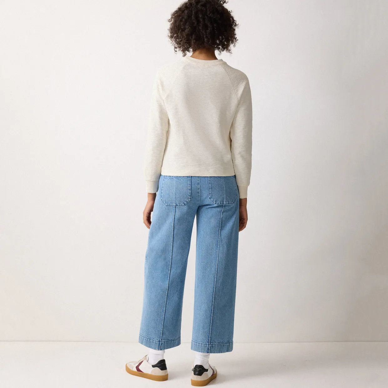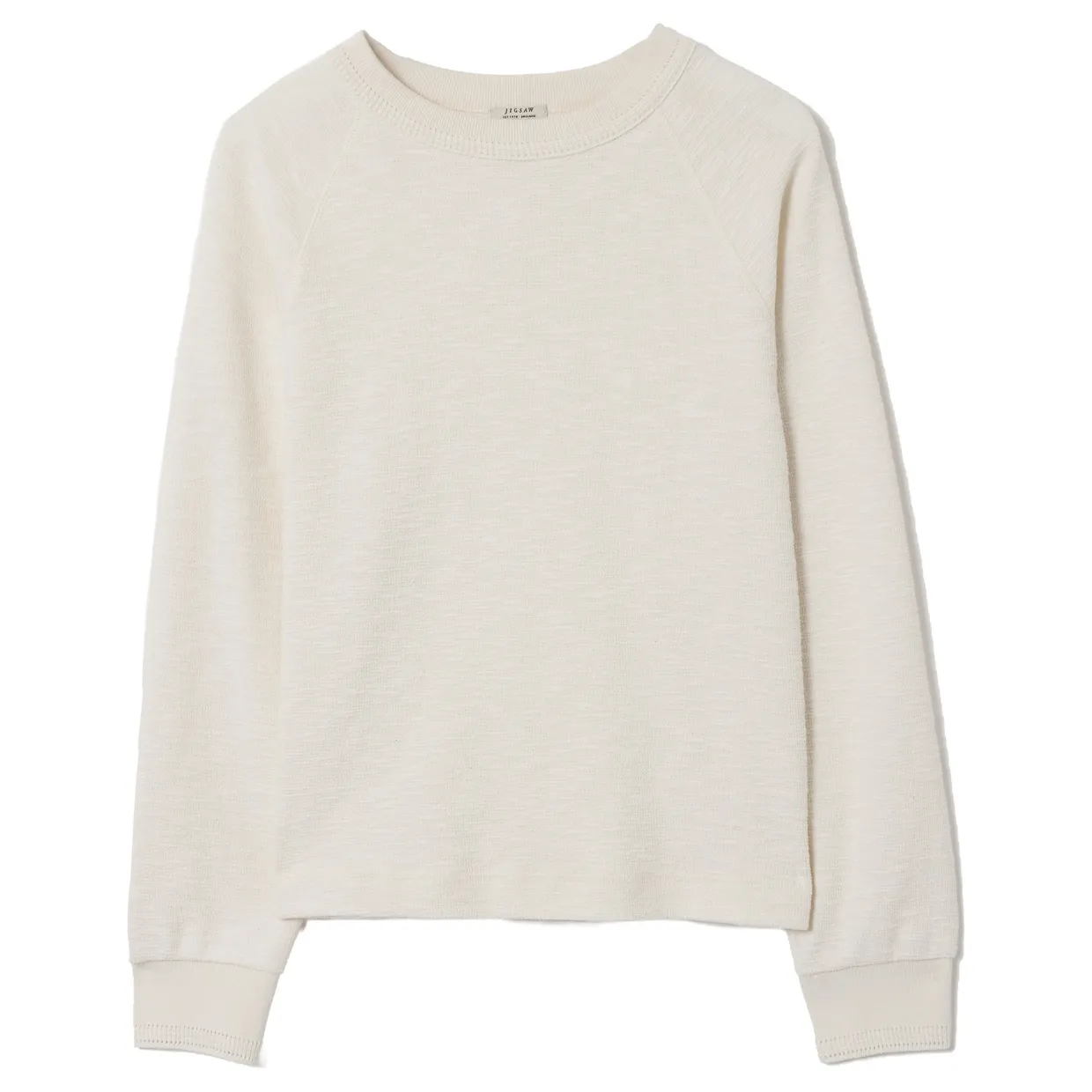 - Crew neckline, textured slub jersey, fine ribbed crochet cuffs