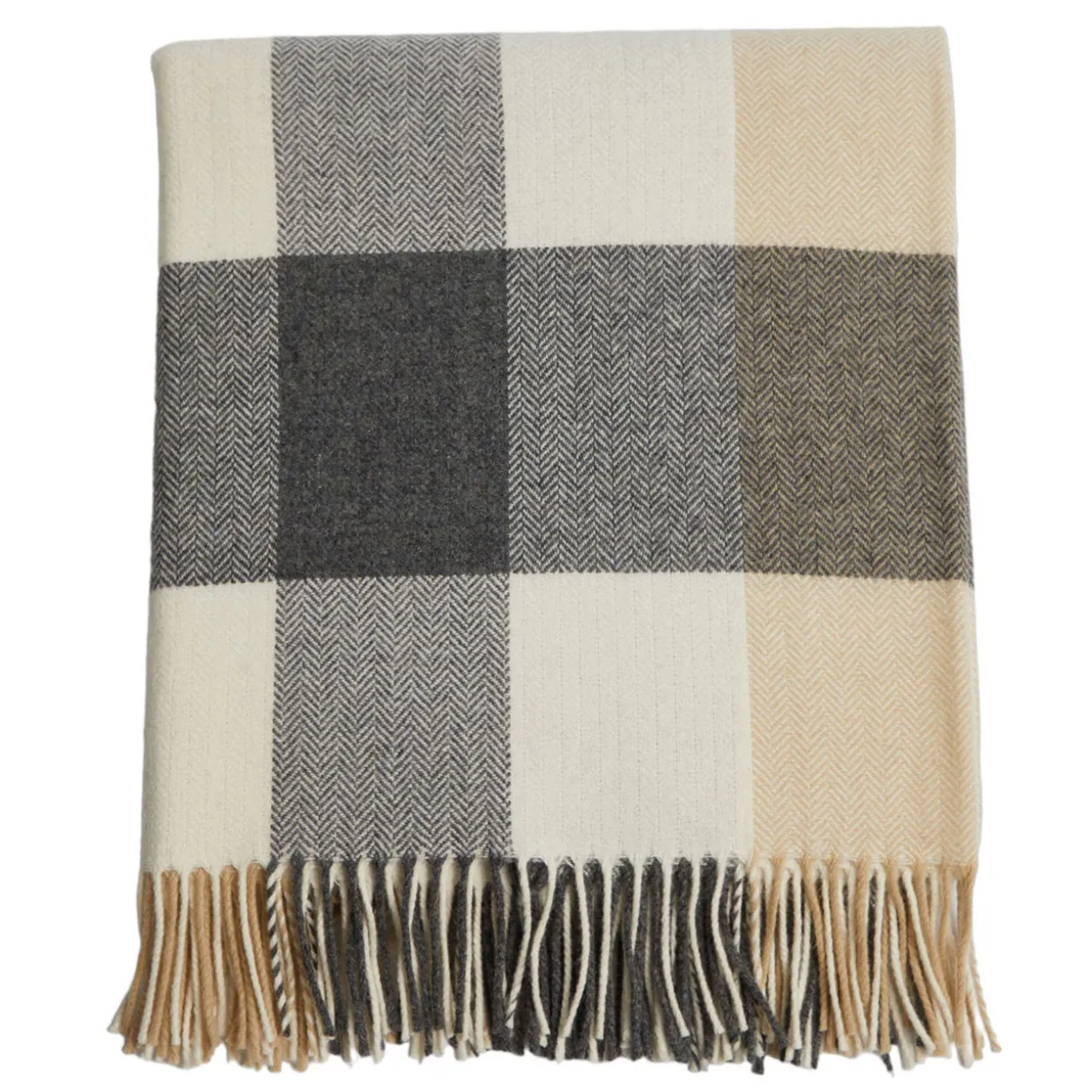 - Check pattern, woven fringed trims, soft touch, logo badge