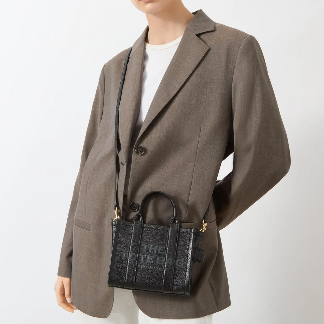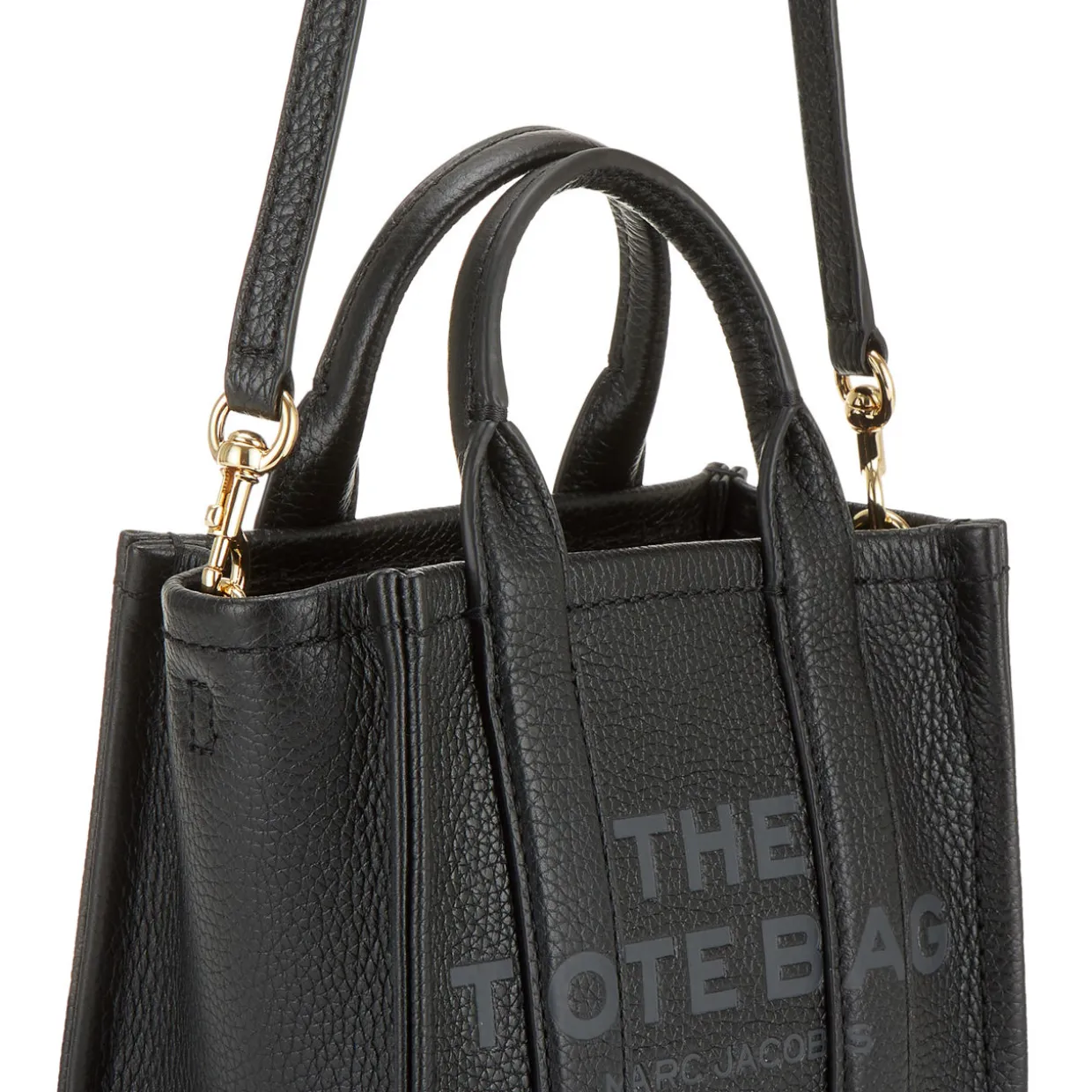 - Boxy shape, zip-top fastening, logo detail, top handle, removable strap, gold-toned hardware