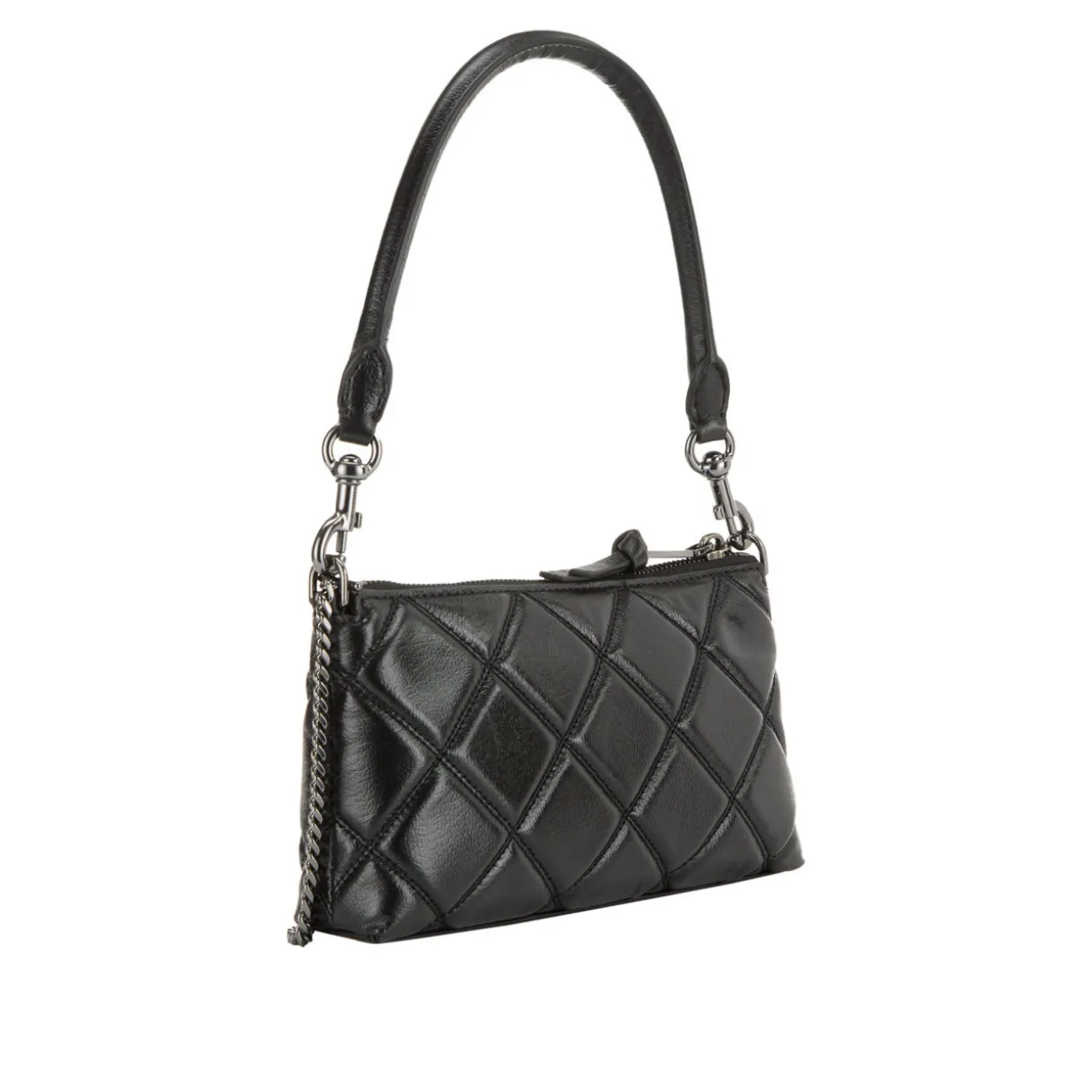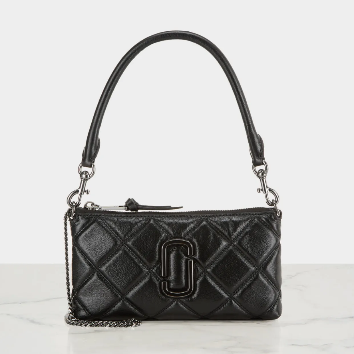 - Detachable shoulder strap, removable chain crossbody strap, zip-top closure, double J hardware, diamond quilted design
