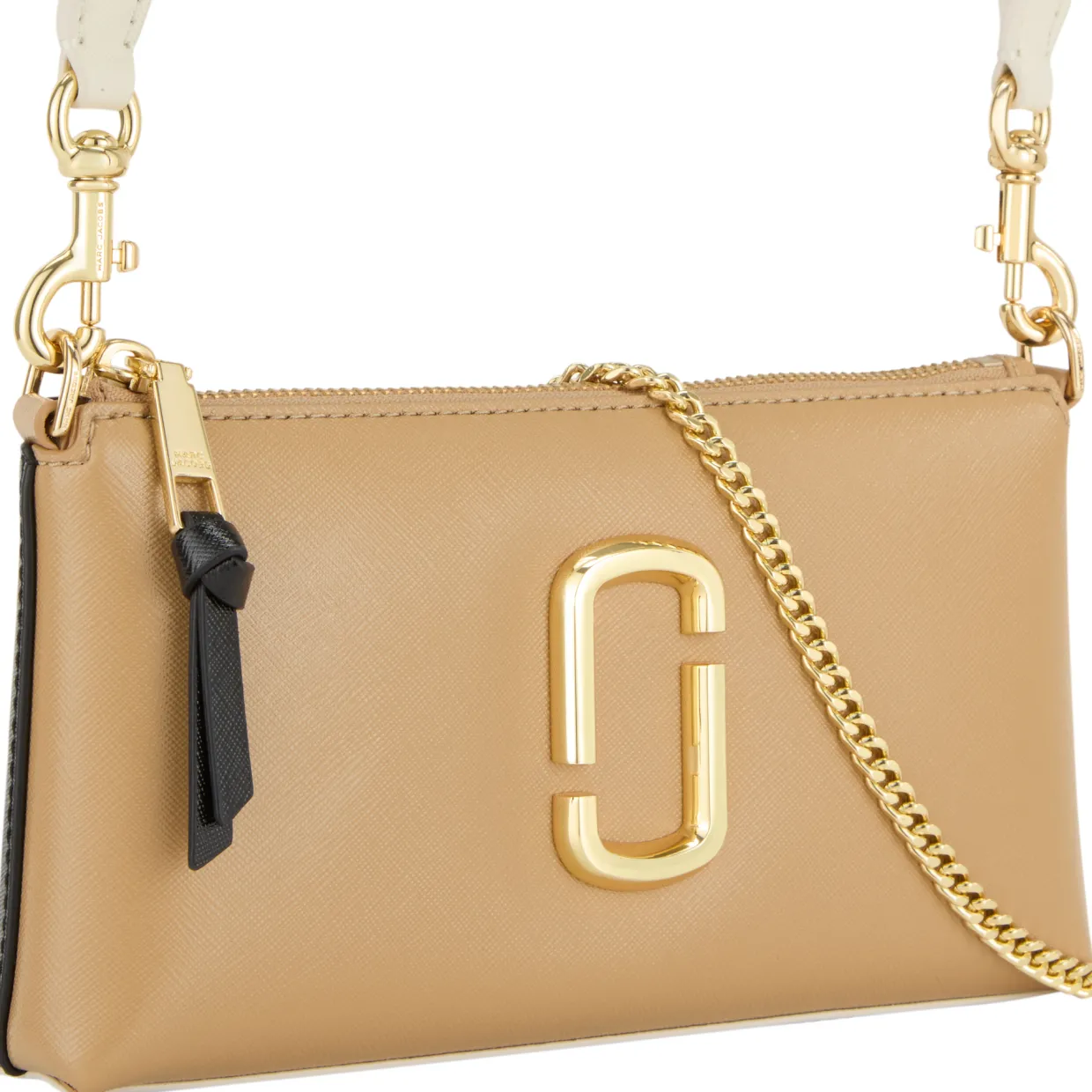 - Detachable shoulder strap, chain strap that can be worn across the body or over the shoulder, top zip-fastening closure, interlocking J logo, gold-tone hardware, debossed logo, crosshatch leather finish