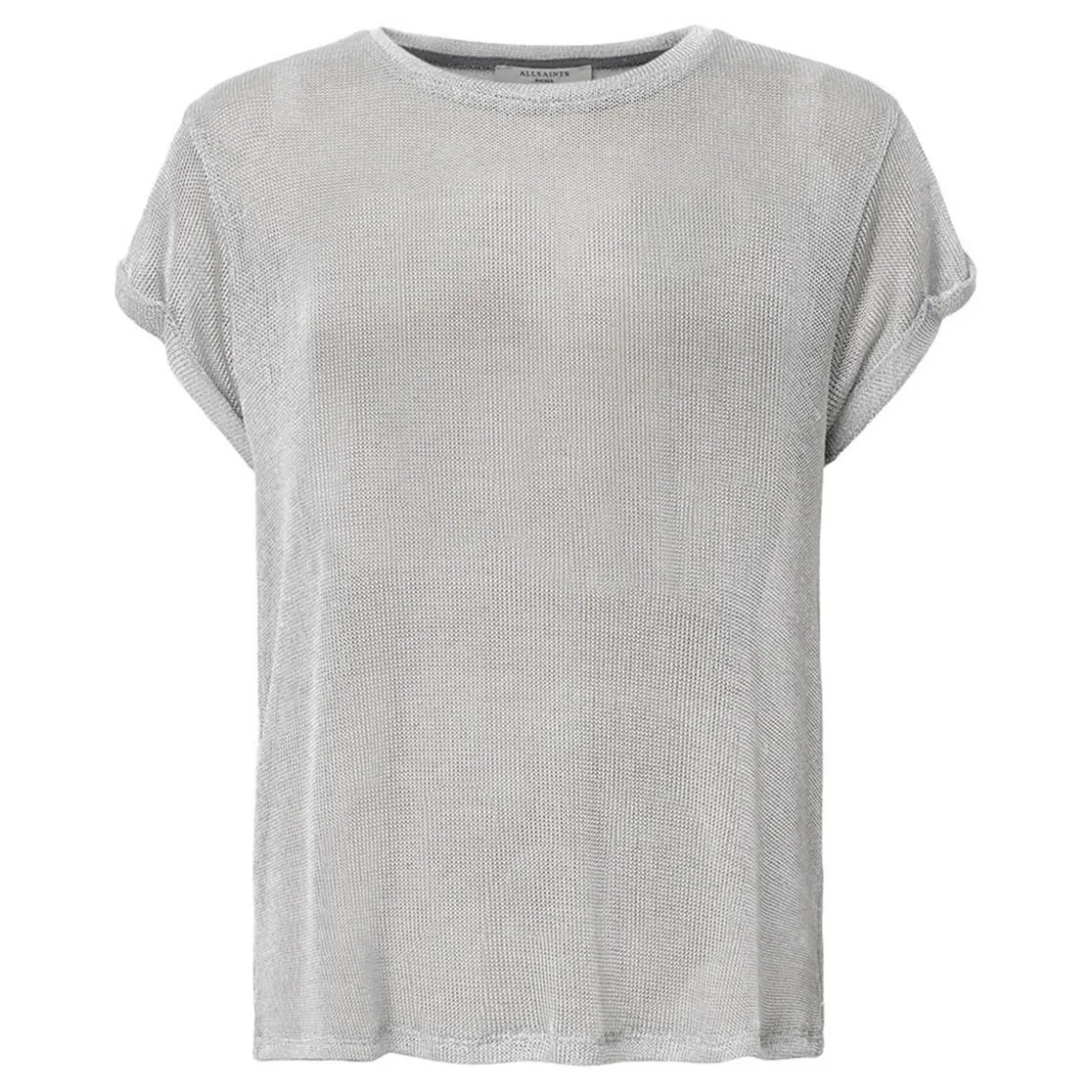 - Sheer, sparkle fabrication, crew neckline, short sleeves, pull-on style