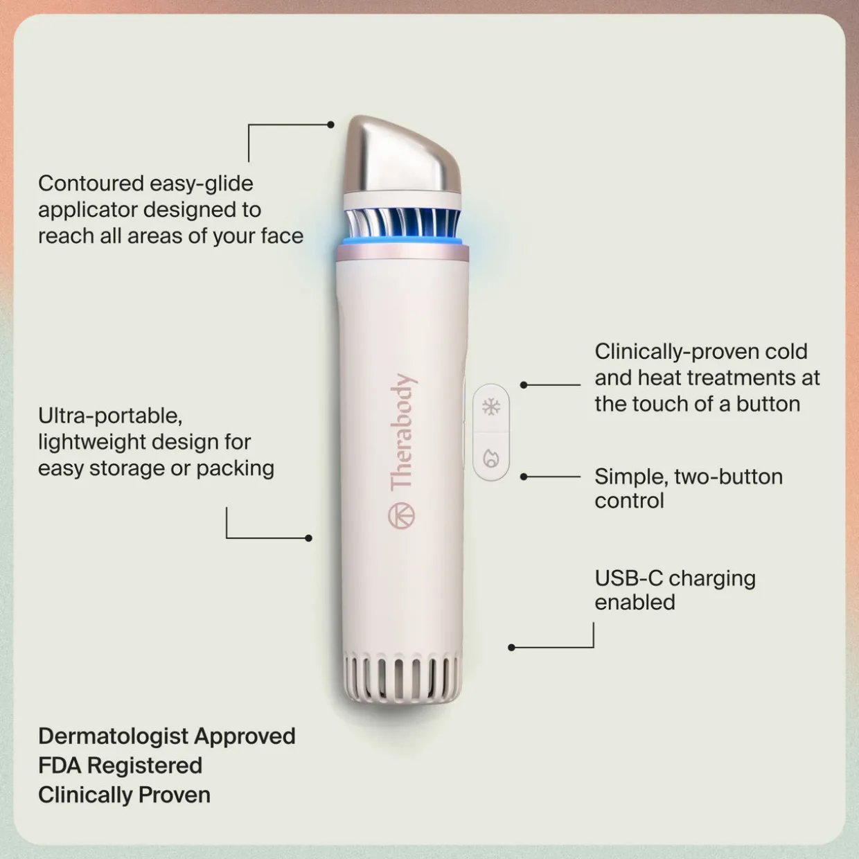 Peace out, puffiness. Say hello to your new skincare hero, the first-of-its-kind TheraFace Depuffing Wand that features cold and heat facial treatments in one portable device, for use at home and on the go.