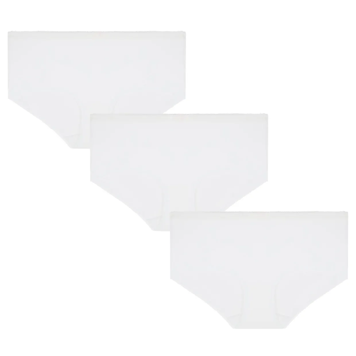 - Three-pack set, mid-rise, low leg coverage, seamless design, decorative border detailing, soft finish