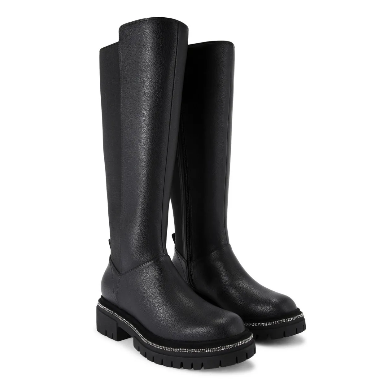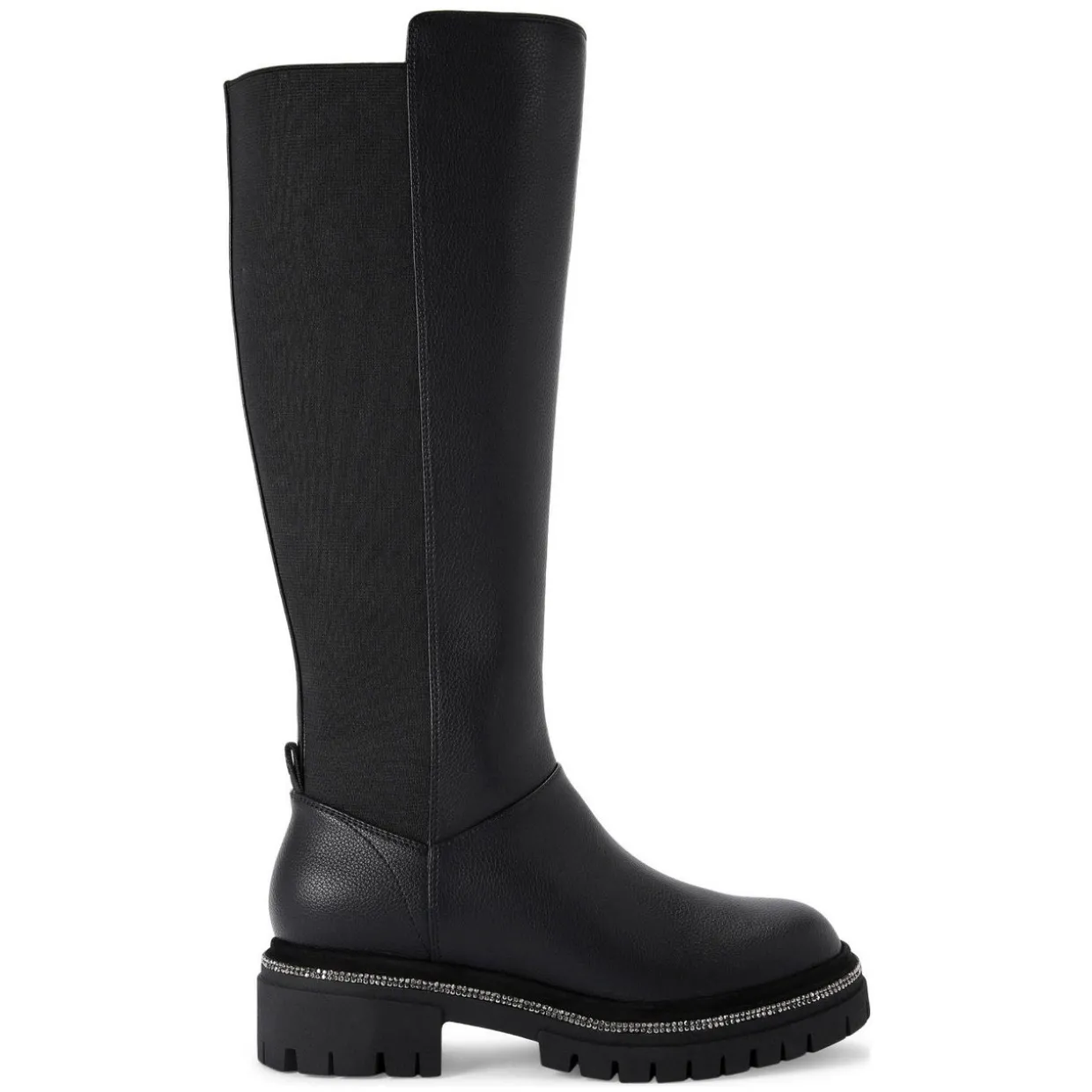 - Round toe, large elasticated panel at the back for slip-on ease, crystal embellishment surrounding the sole