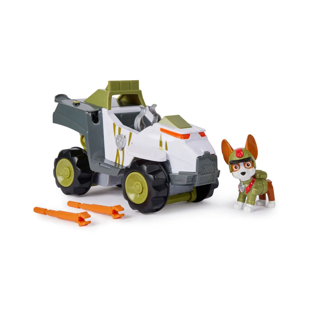 - Includes one Tracker character and one transforming toy car, lift up the tail, ears and launcher port, then load the projectile launcher and push the paw badge to raise the vehicle upwards and complete the transformation into rescue mode