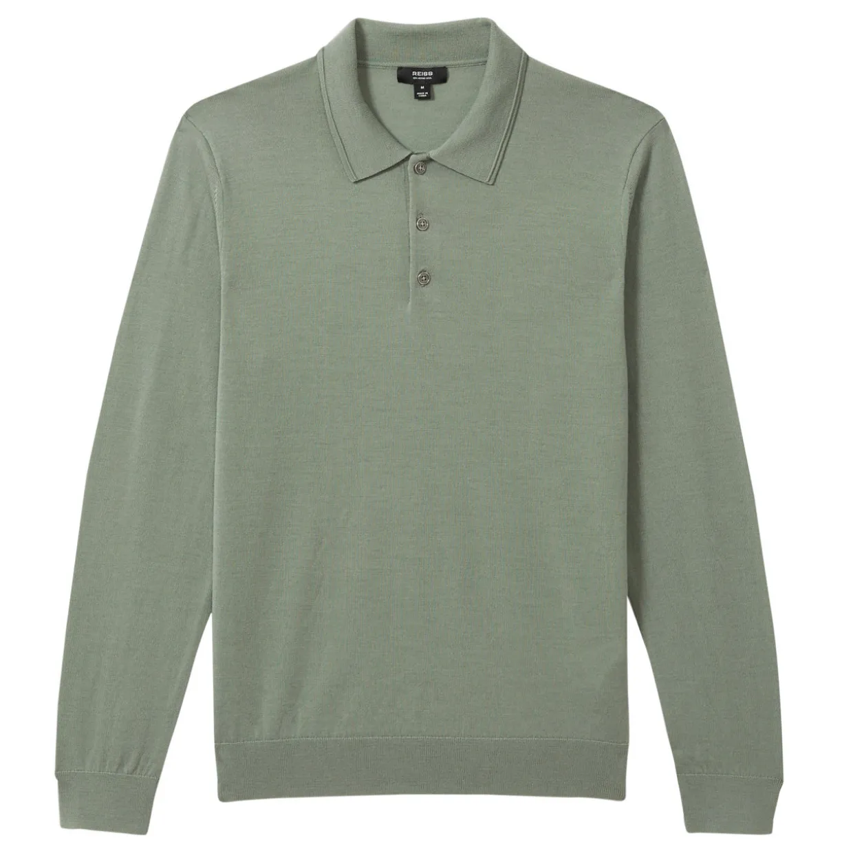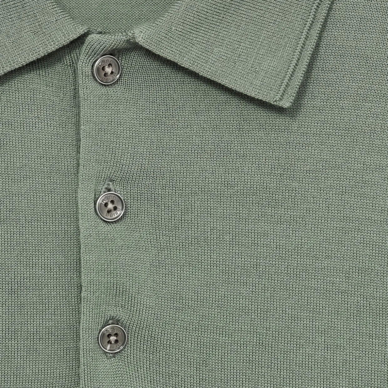 - Flat collar, button fastening, long sleeves, ribbed trims, knit structure