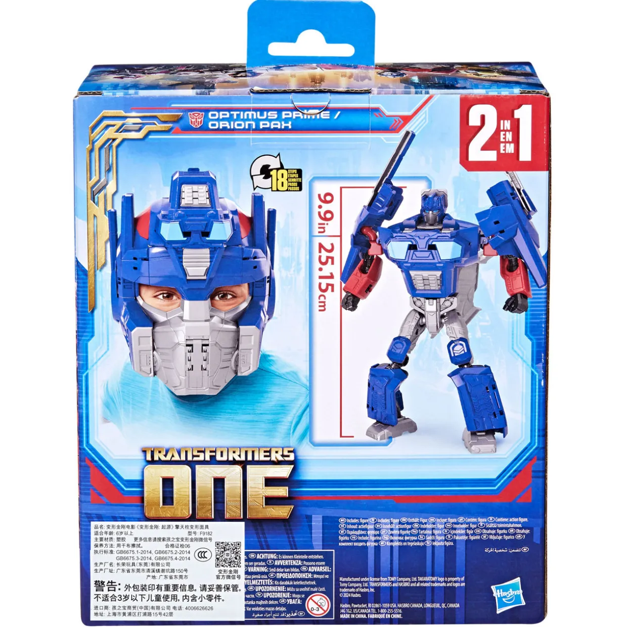 - This 9-inch Transformers Optimus Prime figure can change from a robot toy into a mask toy in 18 steps
