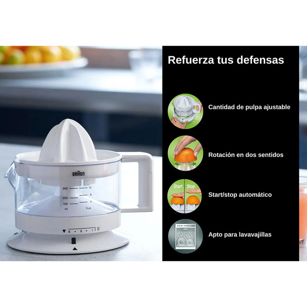 No additional buttons – easy handling by simply pressing down the fruit to start and lifting it off to stop.