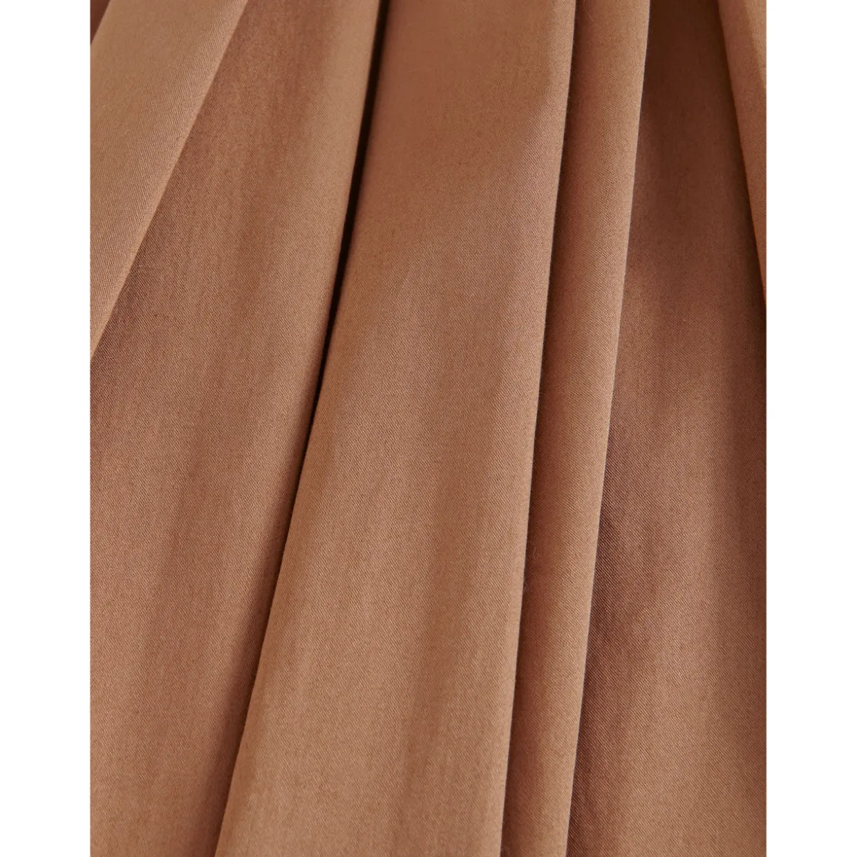 - High-rise, covered waistband, rear zip fastening, pleated design, straight hem, crisp finish, midi length