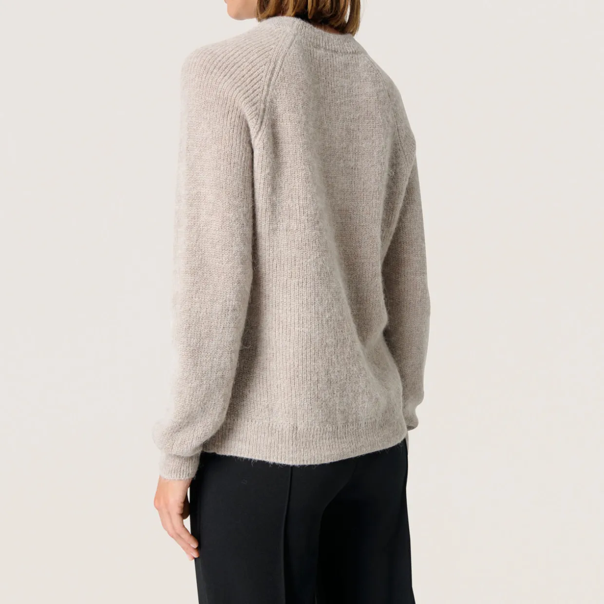 - Long raglan sleeves, crew neckline, knitted design, ribbed trims