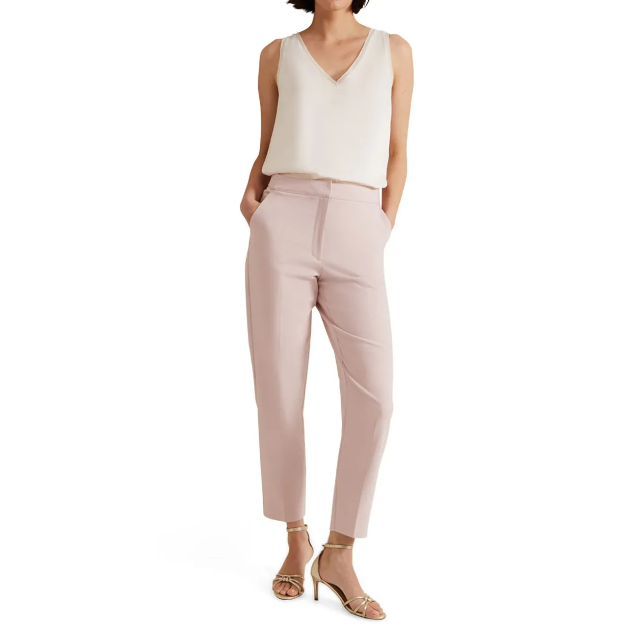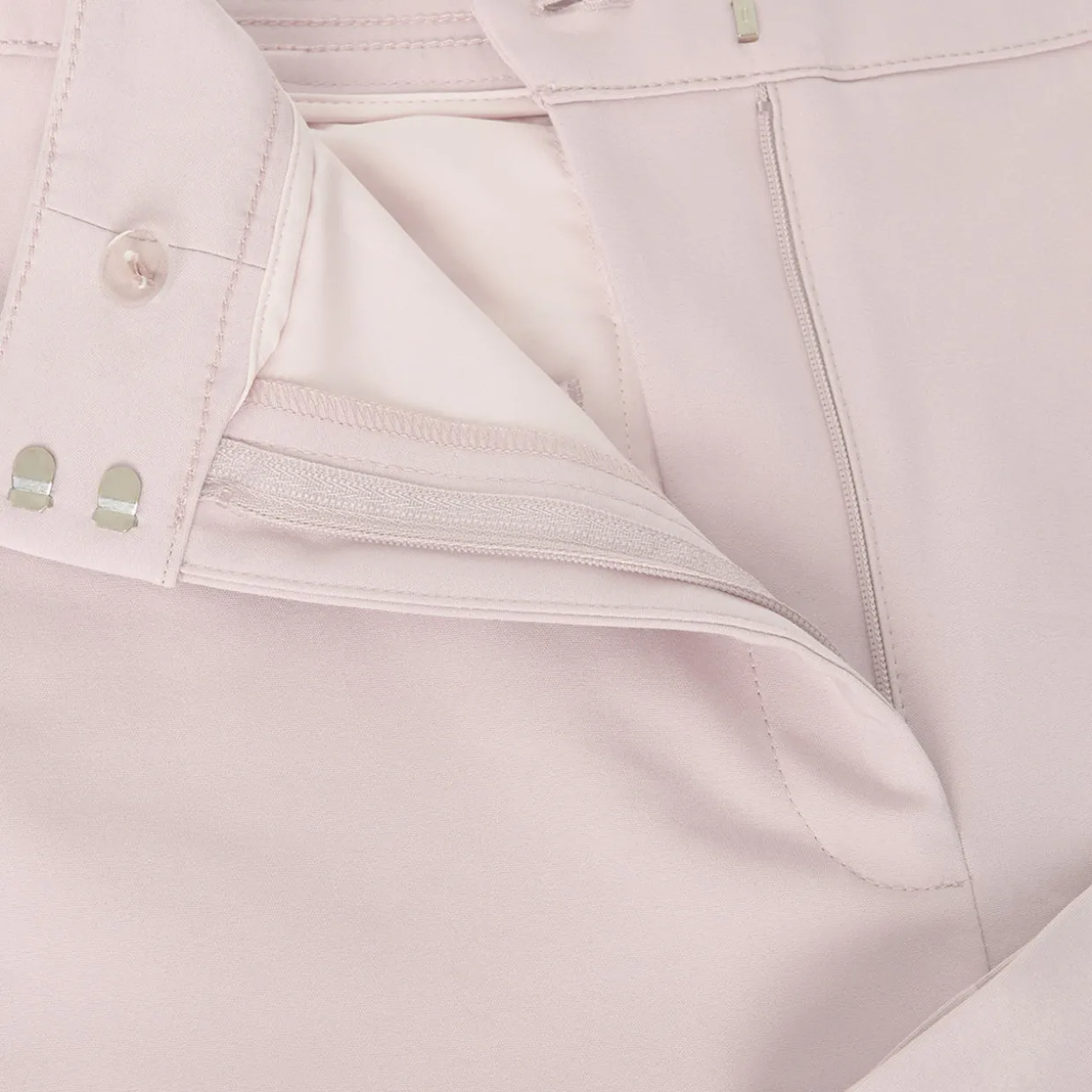 - Tapered silhouette, covered fastenings, elasticated waistband