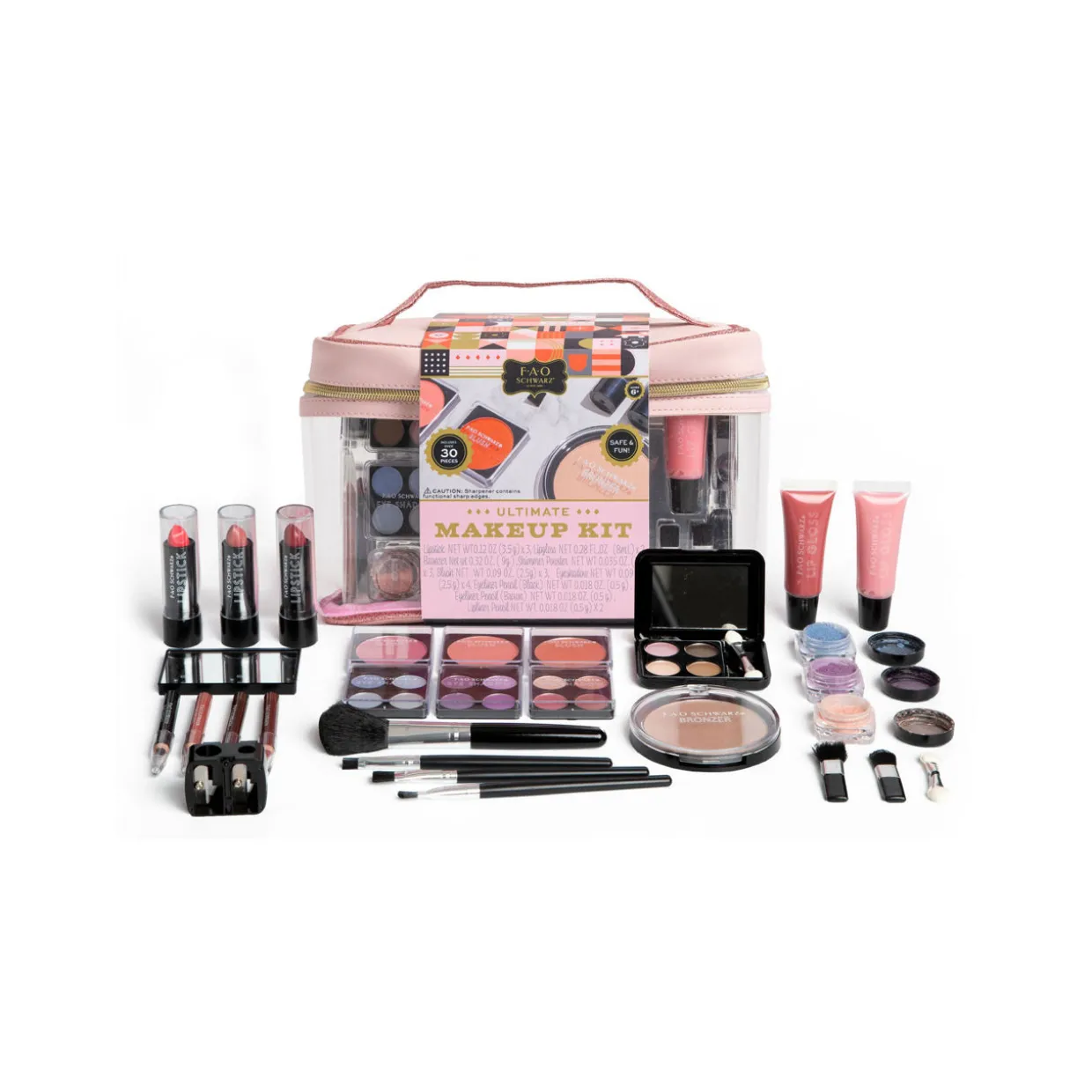 - 30 piece set, storage case, wide range of colours, shades and products, brushes, mirror, makeup is safe and easy to use