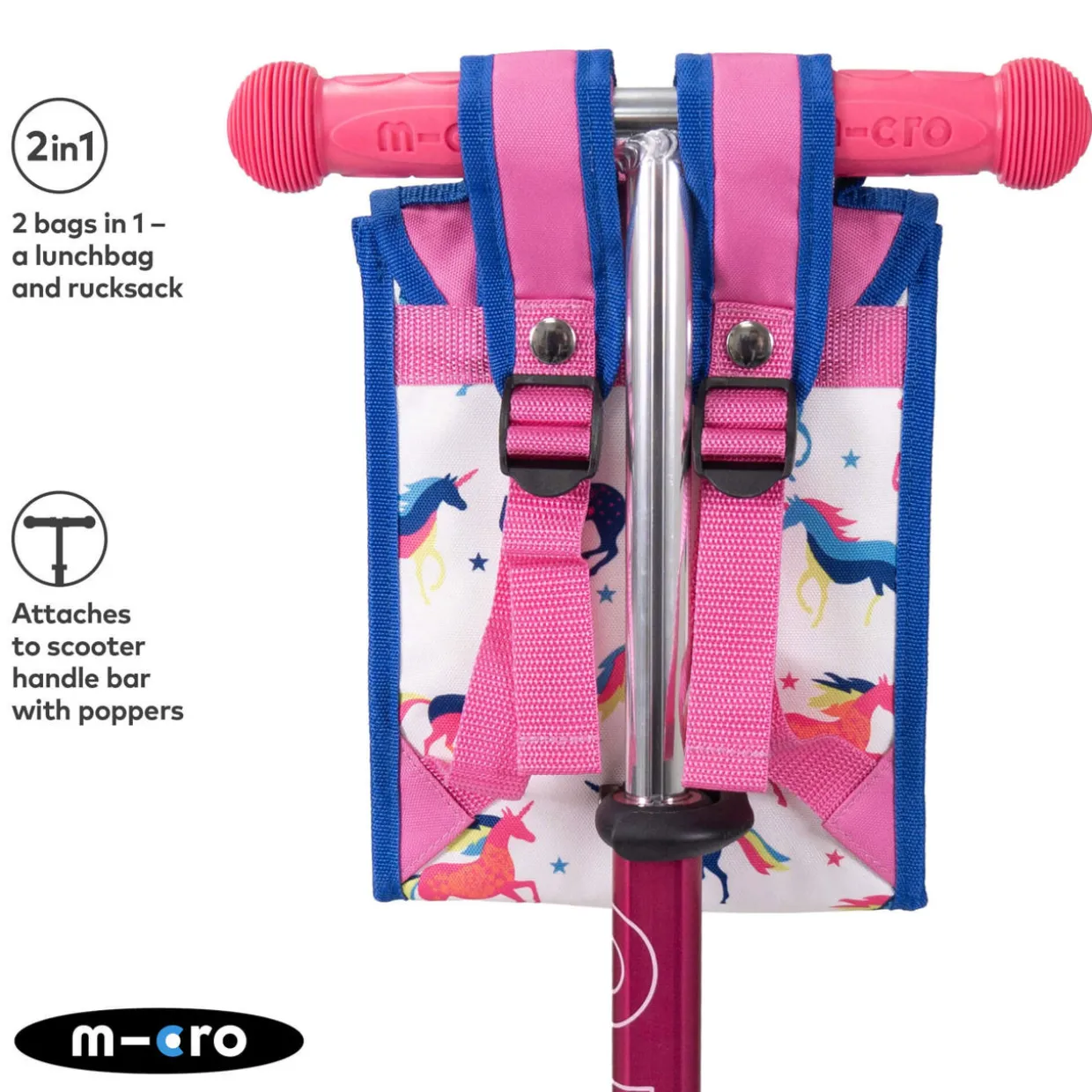 - Unicorn print, 2-in-1 style with lunch bag and rucksack function, insulated foil lining to keep food cool, waterproof