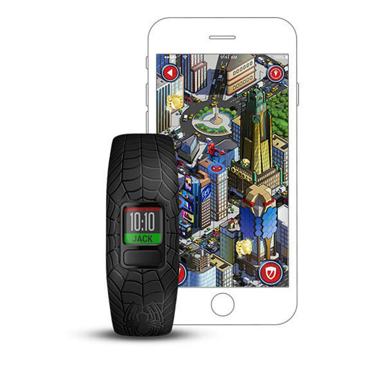 vívofit jr. 2 isn’t just a fitness tracker for kids. It’s an interactive experience where activity unlocks heroic Marvel Spider-Man app adventures.