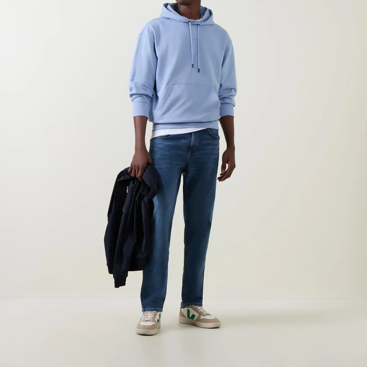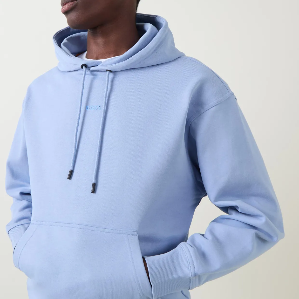 - Hooded, long sleeves, drawstring fastenings, ribbed trims, pouch pocket, logo detail