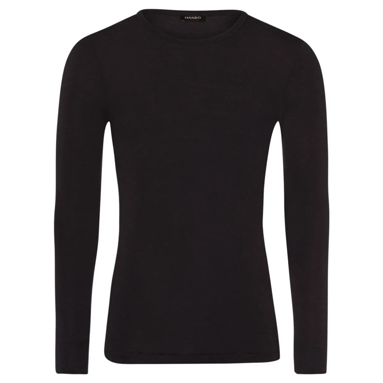 - Round neck, long sleeves, fitted.