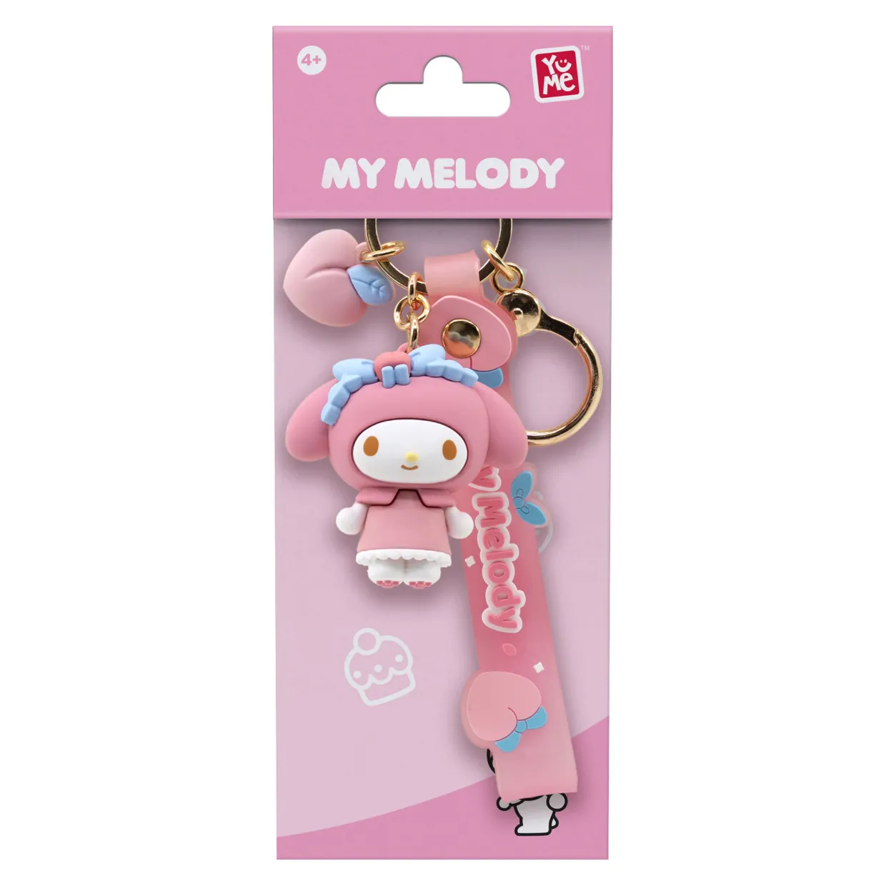 - Four styles to collect, Hello Kitty Sanrio theme, keychain, heart-shaped peach charm, matching strap