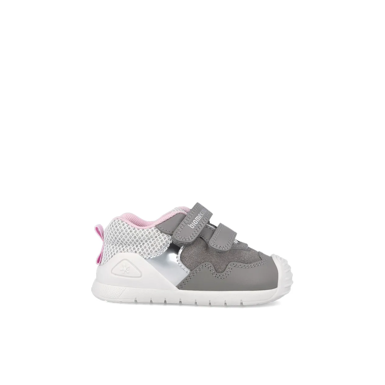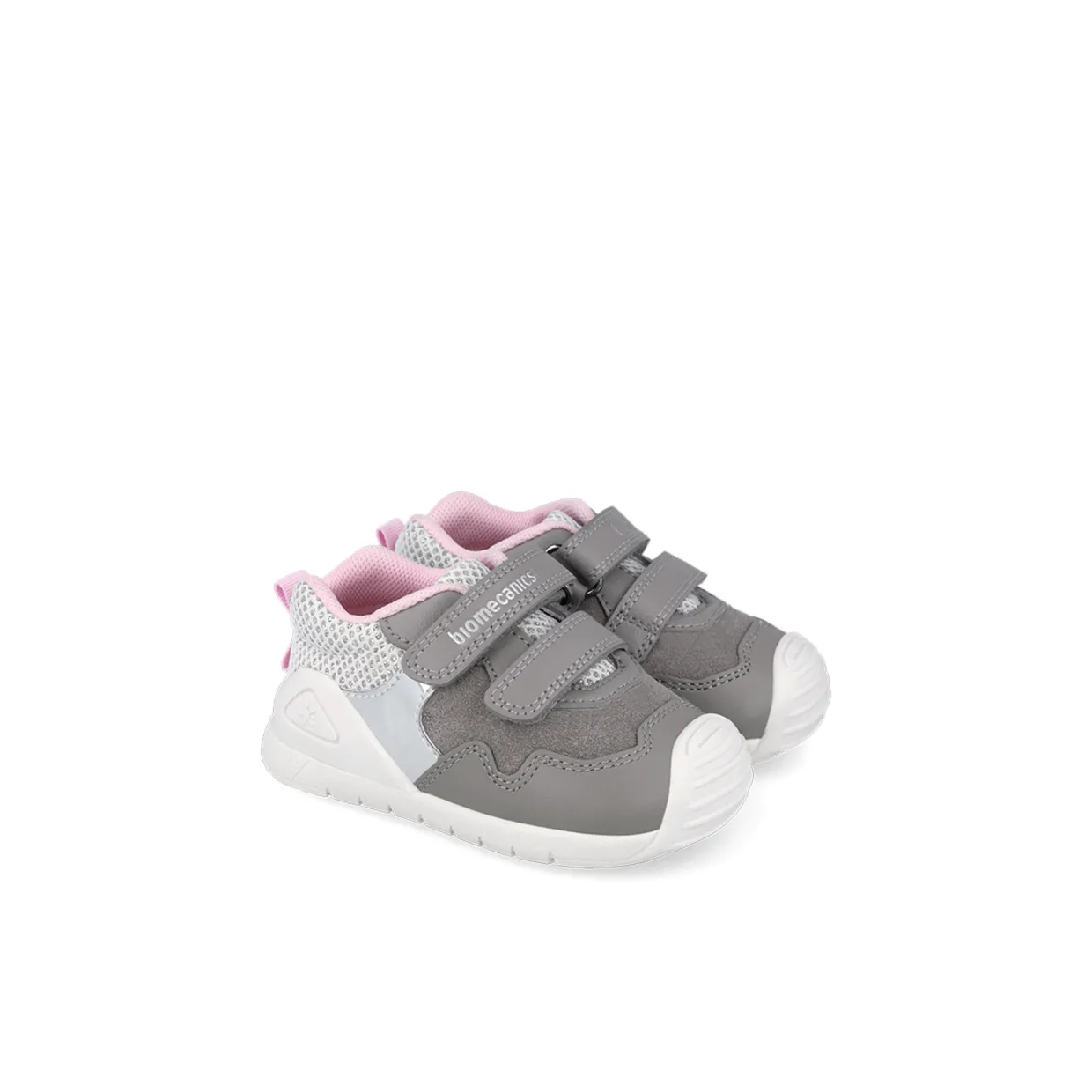 - Round toe, double strap fastening, padded collar, pull tab at heel, toe cap, logo details, glitter embellishment