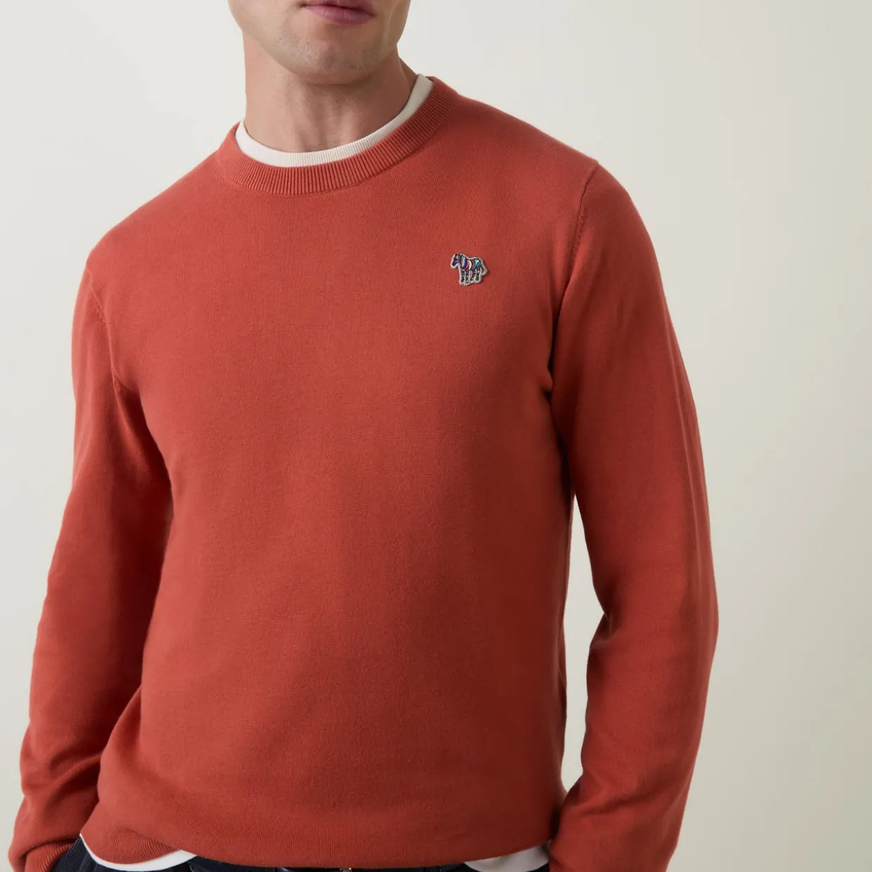 - Crew neckline, long sleeves, ribbed trims, fine knit structure, straight hemline, zebra logo detail