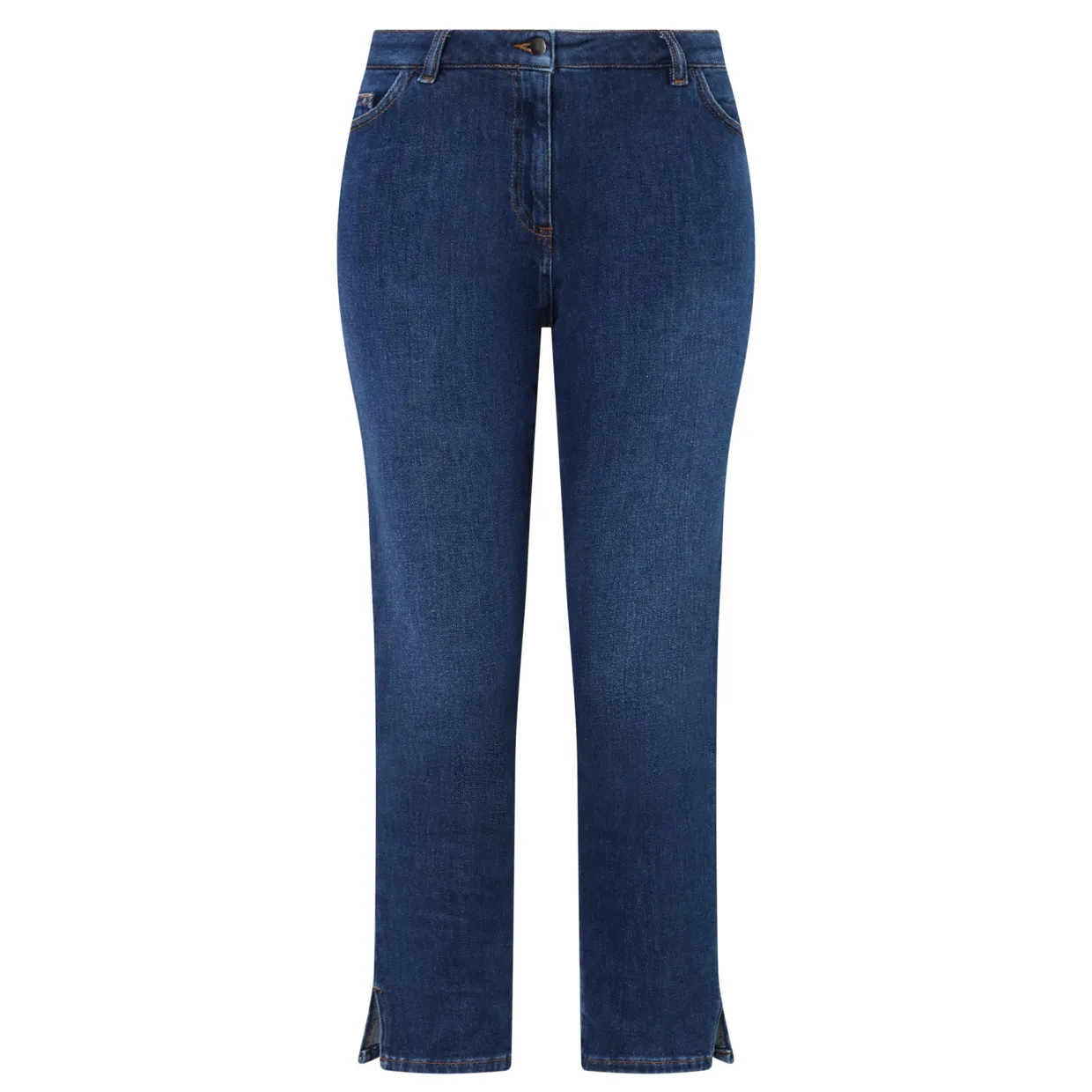 - Button and fly zip fastening, belt loops, five-pocket style, slit hem, stretch-fused fabric