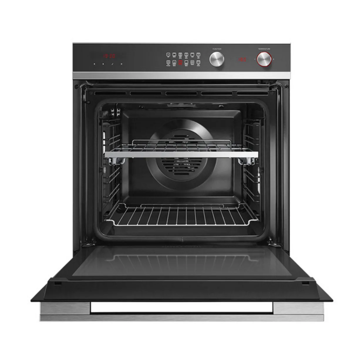 - Non-tip, full-extension shelves for safe removal of hot dishes