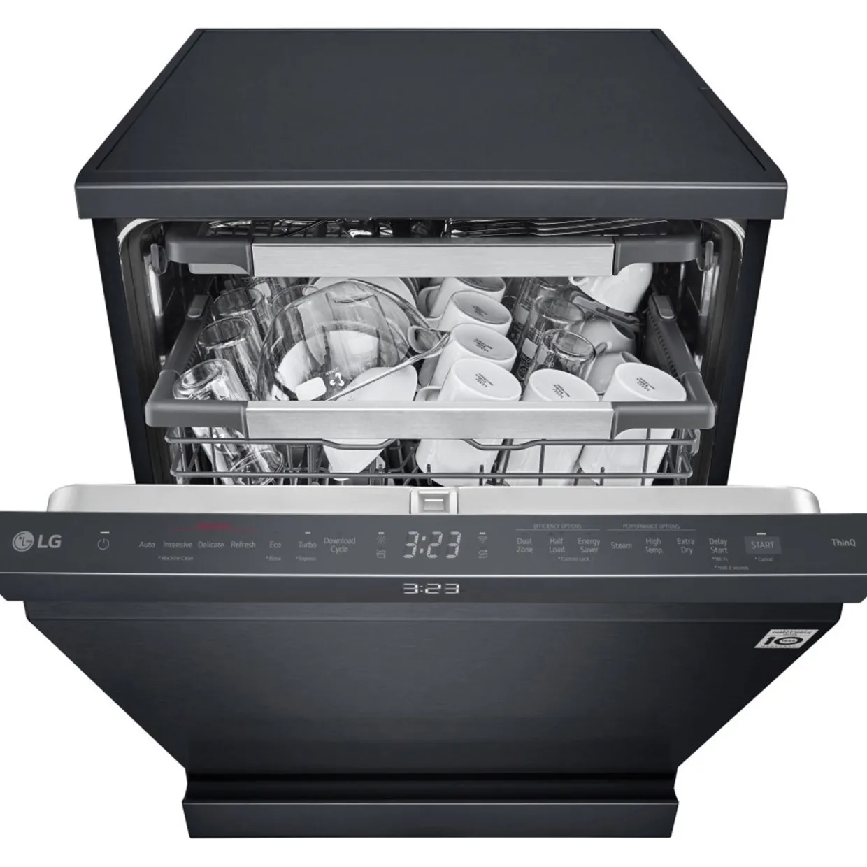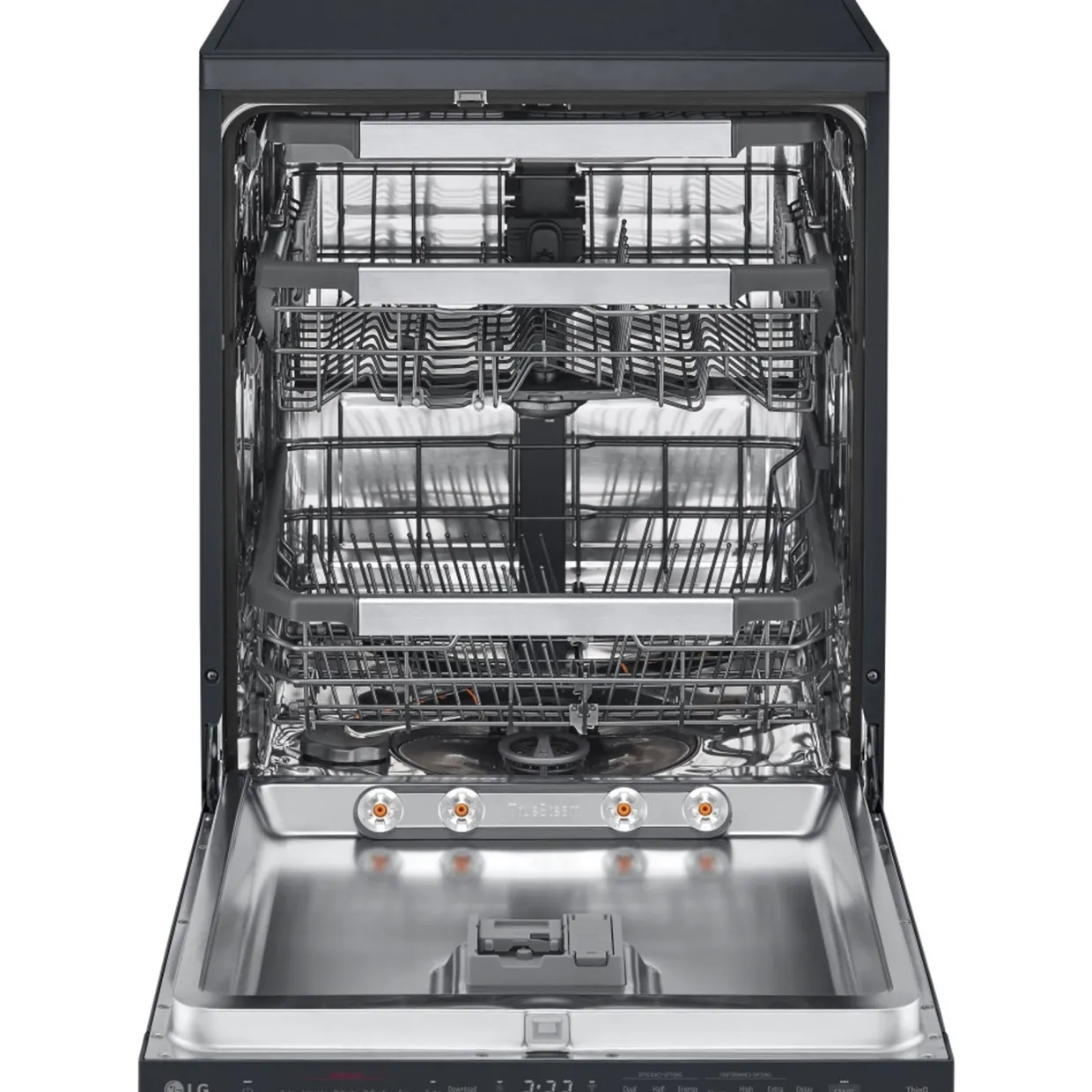 - LG’s QuadWash™ four arm system cleans with wider coverage using powerful streams of water.