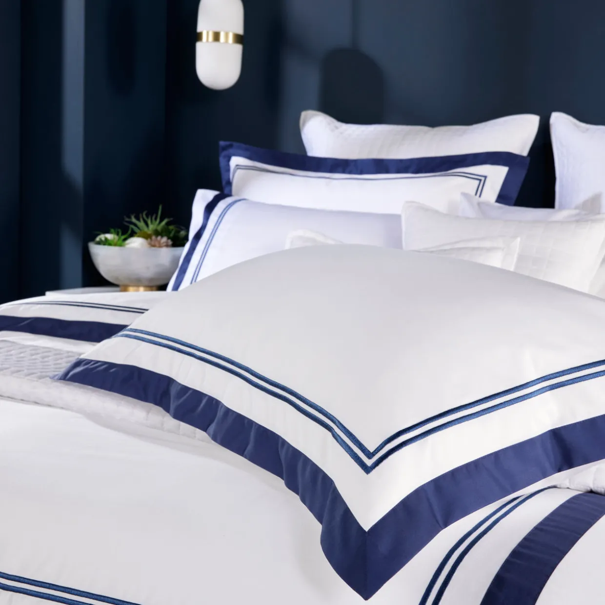 - Embroidered oxford edge detail, soft finish
