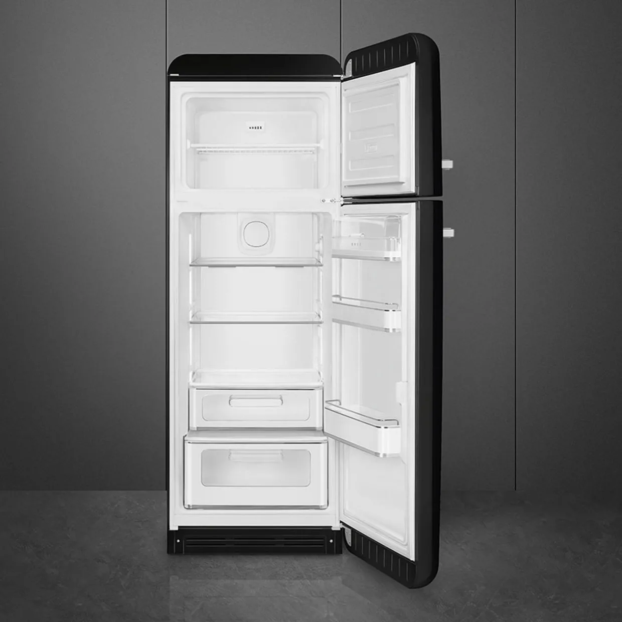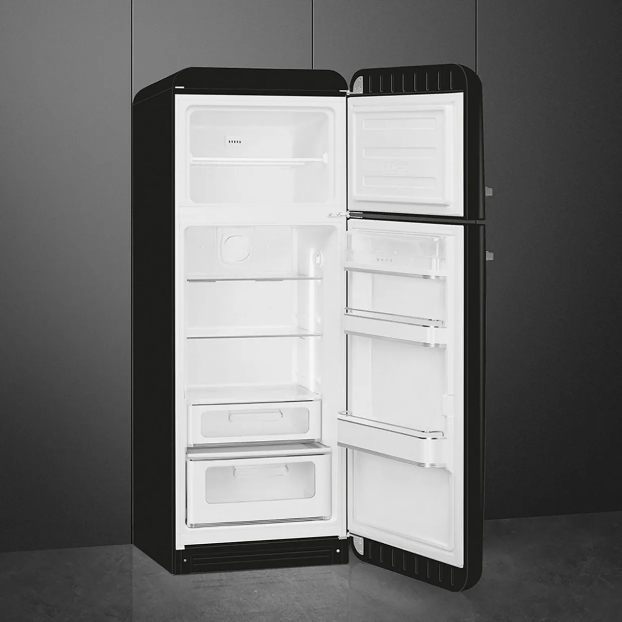 Smeg’s FAB fridge is oftena distinctive element in thekitchen. Its rounded shapes, chromed details and bright colours are key expressions ofstyle and personality. The FAB30offers a sizable capacity to suit your storage needs and features a new stylish interior.