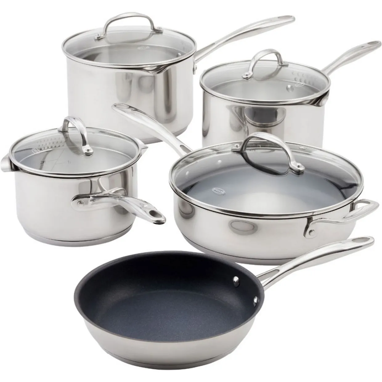 - Set contains: 16/18/20cm draining saucepans, 20cm non-stick frying pan, 24cm non-stick sauté pan