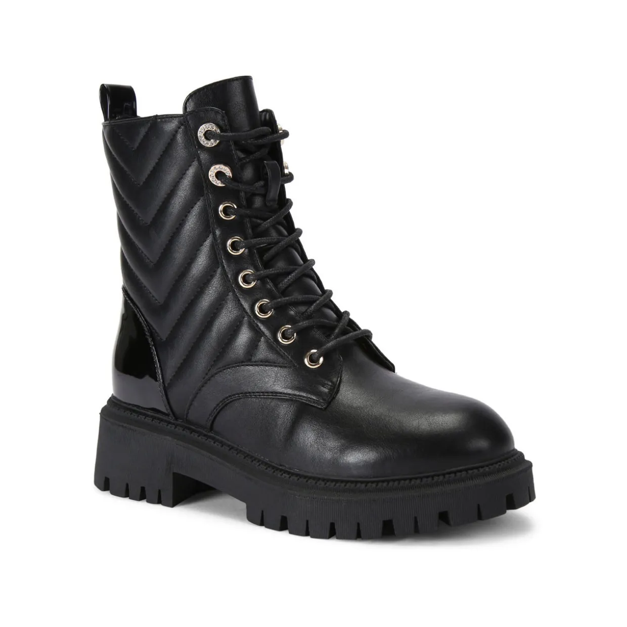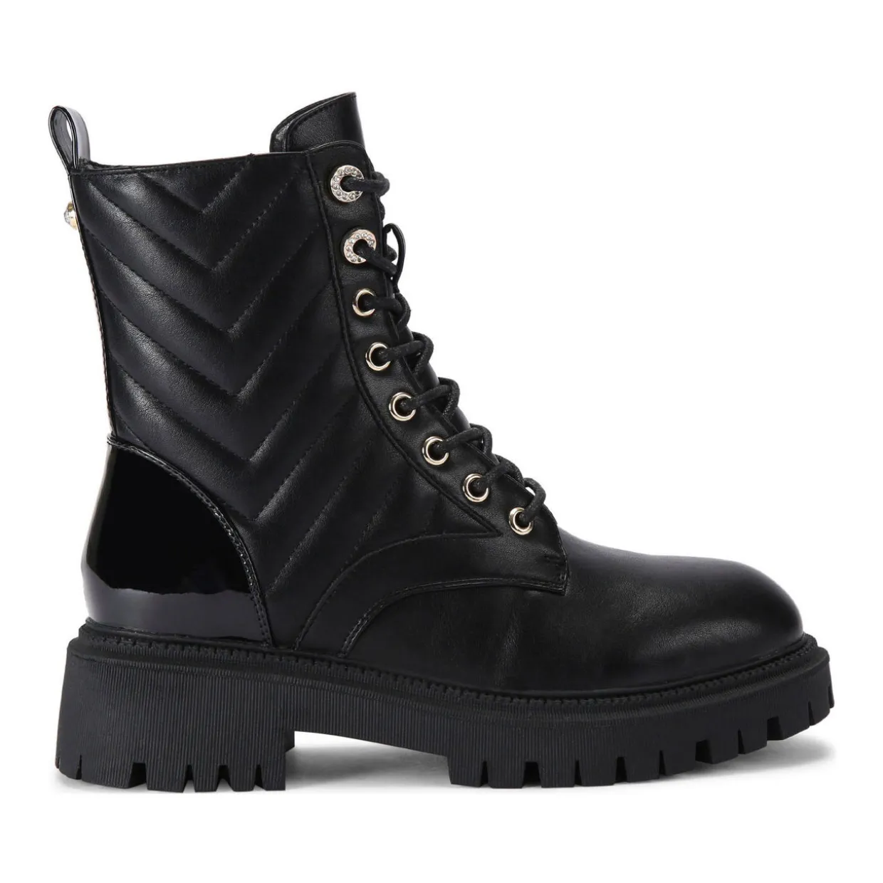 - Round toe, calf-length, side-zip and lace-up fastening, quilted detailing, pull tab at heel, lug sole, All Day technology, gold-tone hardware, stone detail at back